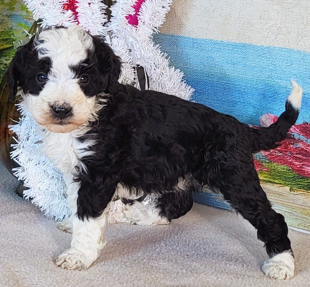 ZelleHello, I’m Mary, a Micro Bernedoodle with a soft curly coat and a sweet, affectionate personality. I have a naturally gentle temperament and enjoy staying close to my people, happily joining daily routines or settling in for cozy cuddle time once I feel comfortable. My petite expected size makes me a wonderful fit for apartments or homes of any layout while still offering the loving Bernedoodle personality families adore.I’ve been vet checked, vaccinated, microchipped, and come with a 2-year health guarantee for added reassurance. With daily care, affection, and early socialization, I’m developing into a confident and devoted companion who truly values human connection. I’m hoping to find a forever family who will include me in everyday life and cherish me as part of their home. West Jordan, Utah (near Jordan Landing, 84088) Call or text: (909) 655-4880 or (385) 475-4435 Reach out anytime for more information or to schedule a visit — I can’t wait to meet you!