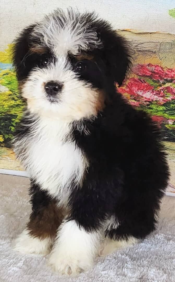ZelleEssie is a loving Tri Mini Bernedoodle whose gentle personality easily captures hearts. She is a sweet and affectionate puppy who beautifully combines playful curiosity with a calm, steady presence. Essie enjoys both fun adventures and quiet cuddle time with her favorite people. Her friendly, people-oriented temperament allows her to build strong bonds quickly and thrive in nurturing homes.Her stunning tri-color coat and adaptable personality make her a wonderful fit for both peaceful households and active families. Expected to stay a comfortable mini size, Essie is well suited for apartments or homes of any layout. She has been vet checked, fully vaccinated, microchipped, and comes with a 2-year health guarantee—showing the attentive care she has received since birth. With early socialization and consistent love, Essie is maturing into a confident, loyal, and well-rounded companion — perfect for anyone searching for a gentle and devoted puppy. West Jordan, Utah (near Jordan Landing, 84088) Call or text: (909) 655-4880 or (385) 475-4435 Reach out anytime to learn more or schedule a visit — Essie would love to meet you!