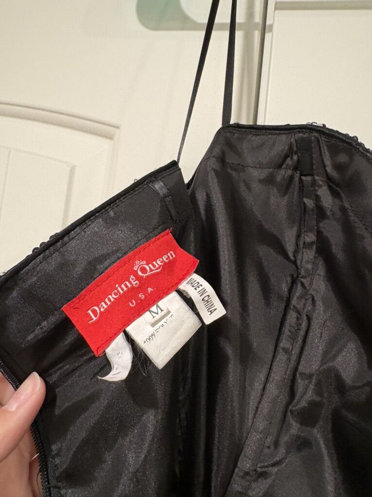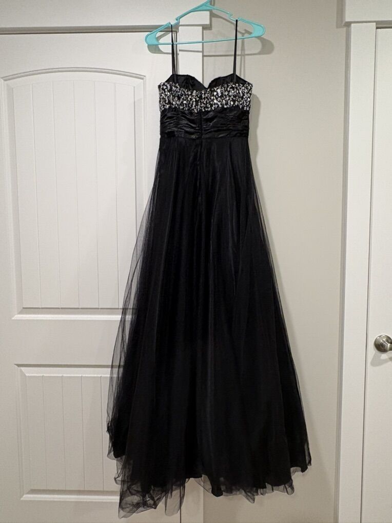 VenmoBlack ballgown with black and silver sequins and a black sash Zipper back