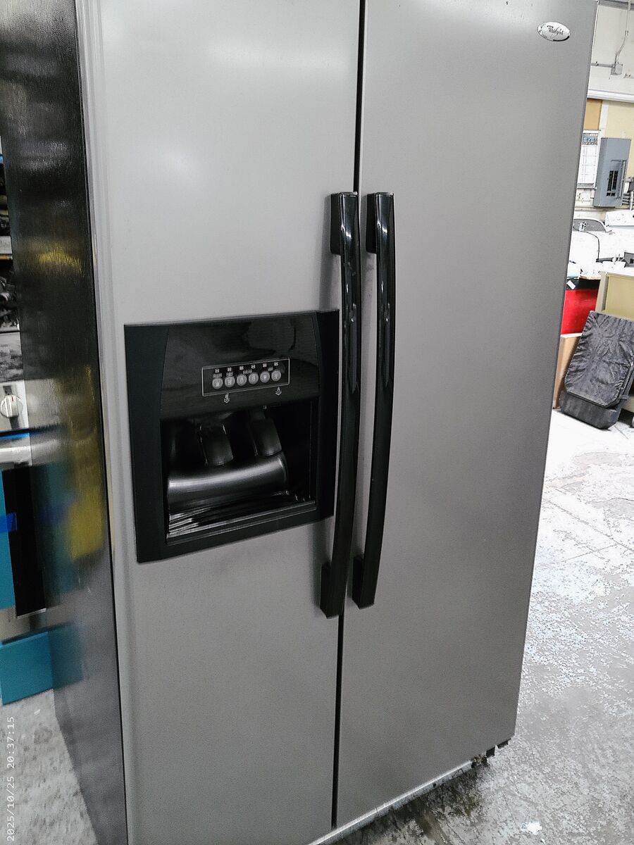 Whirlpool 25 cubic foot Side by Side refrigerator in excellent working condition. Tested, cleaned, ready to go. Water and Ice dispensers.