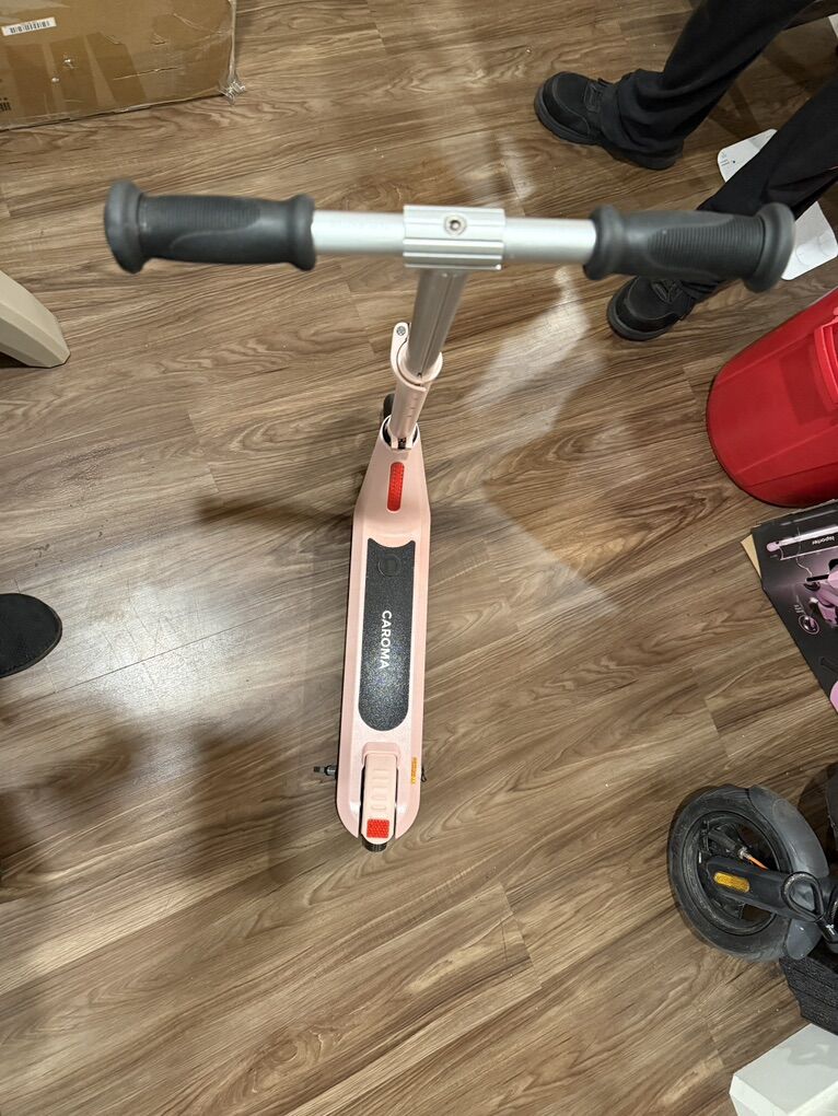 Zelle120W Electric Scooter for Kids, pink, like new- only been tested inside 2-3times on hardwood floors. Adjustable height handle bars, LED under lights