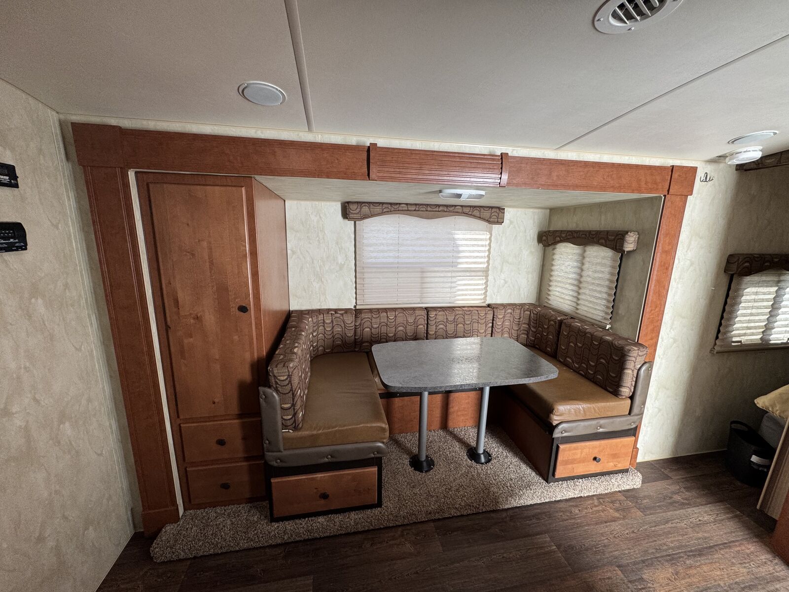 Spec sheet: https://northwoodmfg.com/wp-content/uploads/SR-234RBS.pdf . The trailer has the thermal pane windows and the 12V power jack from the factory.