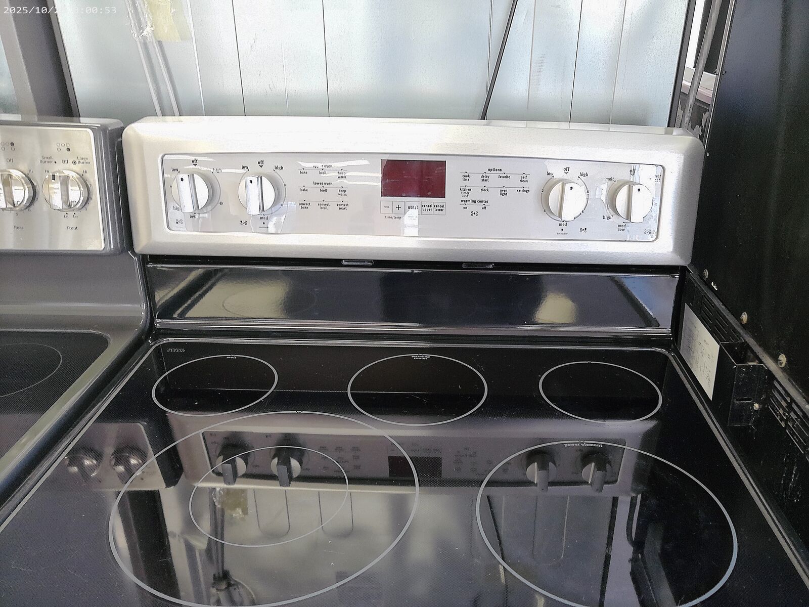 Whirlpool Maytag Stainless Steel Double Oven Smooth Top Electric Stove in excellent working condition. Tested, cleaned, ready to go.