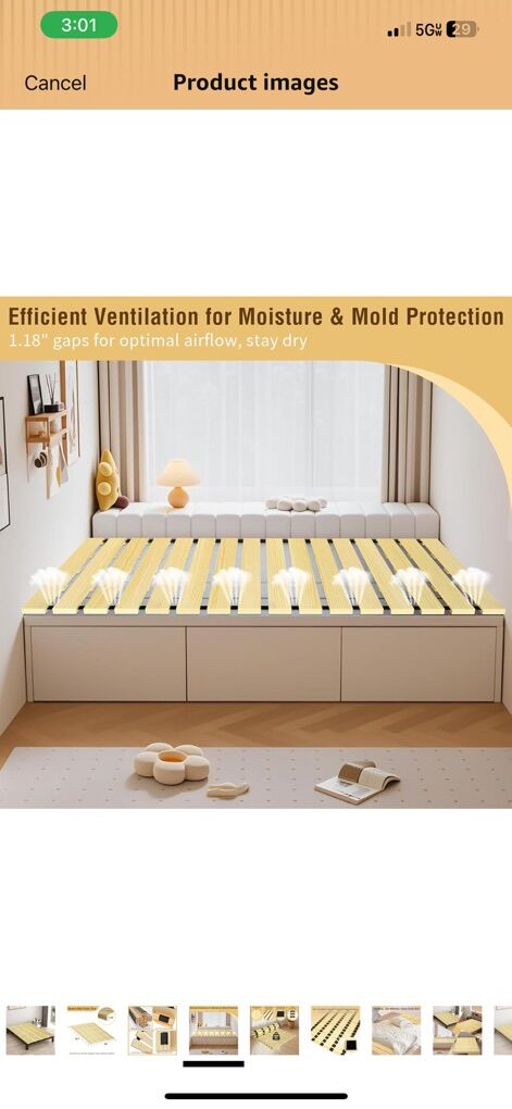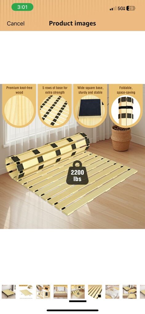 100% Natural Wood: Crafted from natural solid wood, our tatami mat floor bed features extra-thick slats for unmatched sturdiness; The absence of chemical coatings ensures safety, while resisting warping and maintaining integrity over time Built to Last: Featuring a reinforced concave base, each support base matches the exact width of the slats, ensuring even weight distribution and a 2200 lb capacity; With roll-up convenience, simply roll the bed plate into a compact cylinder and stash it vertically in a closet Easy to Use: Unbox and unfold directly on your floor, or place the slatted bed over a tatami mat; With weights of 29 lbs (Twin), 40 lbs (Full), and 42 lbs (Queen), we recommend two-person handling for easier setup and movement Moisture-Proof and Breathable: Designed for humid climates, the knot-free wood bed plate minimizes moisture absorption, while 1.2-inch gaps between slats promote airflow; Say goodbye to mold and enjoy a cooler sleep – perfect for pairing with a tatami mat Versatile for Any Lifestyle: Embrace a Japanese aesthetic by pairing it with a futon mattress, save space in studios or guest rooms, or opt for firm floor sleeping for a wellness-oriented experiencez