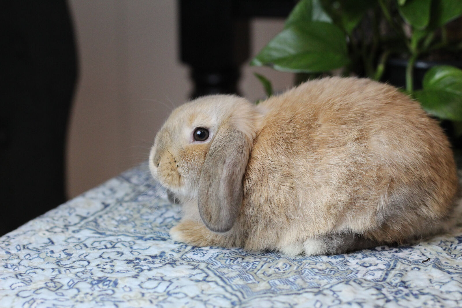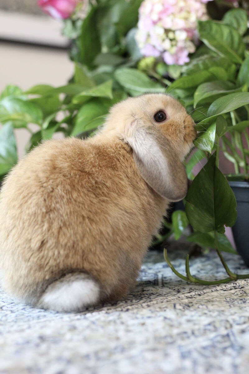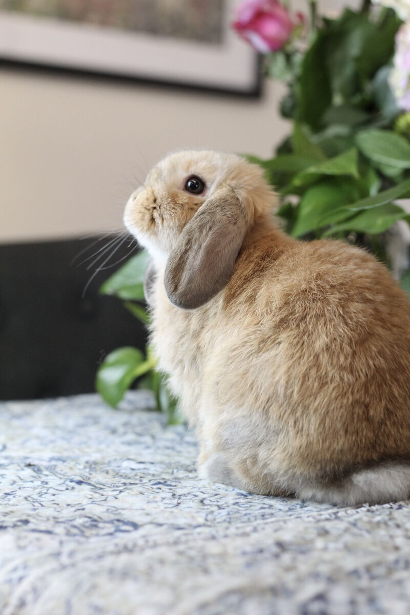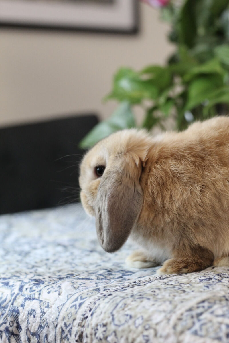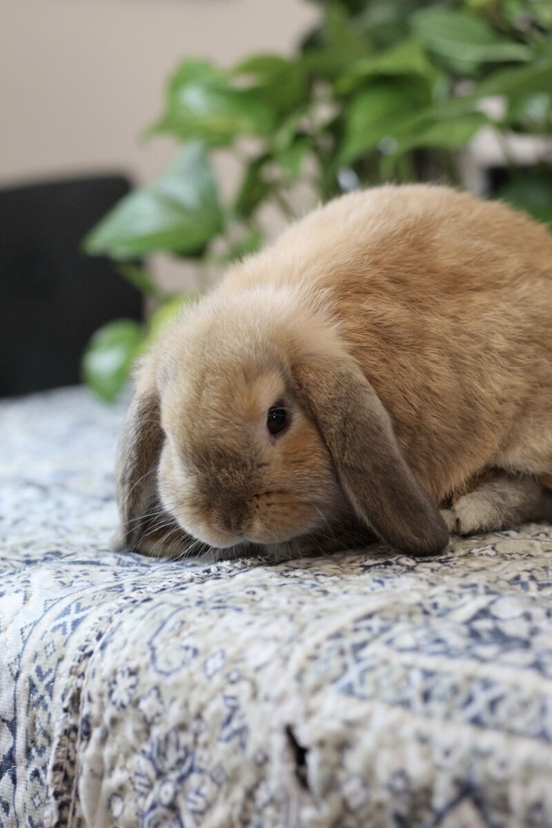 This is the most mellow little guy I have ever have. He is a complete pancake in all forms of the word. He LOVES to be held and will melt into your body. He isn't startled easily so he doesn't run away or hide. He really loves to be pet and cuddled. He would make the perfect 4H bunny for a young child wanting something really cuddly.