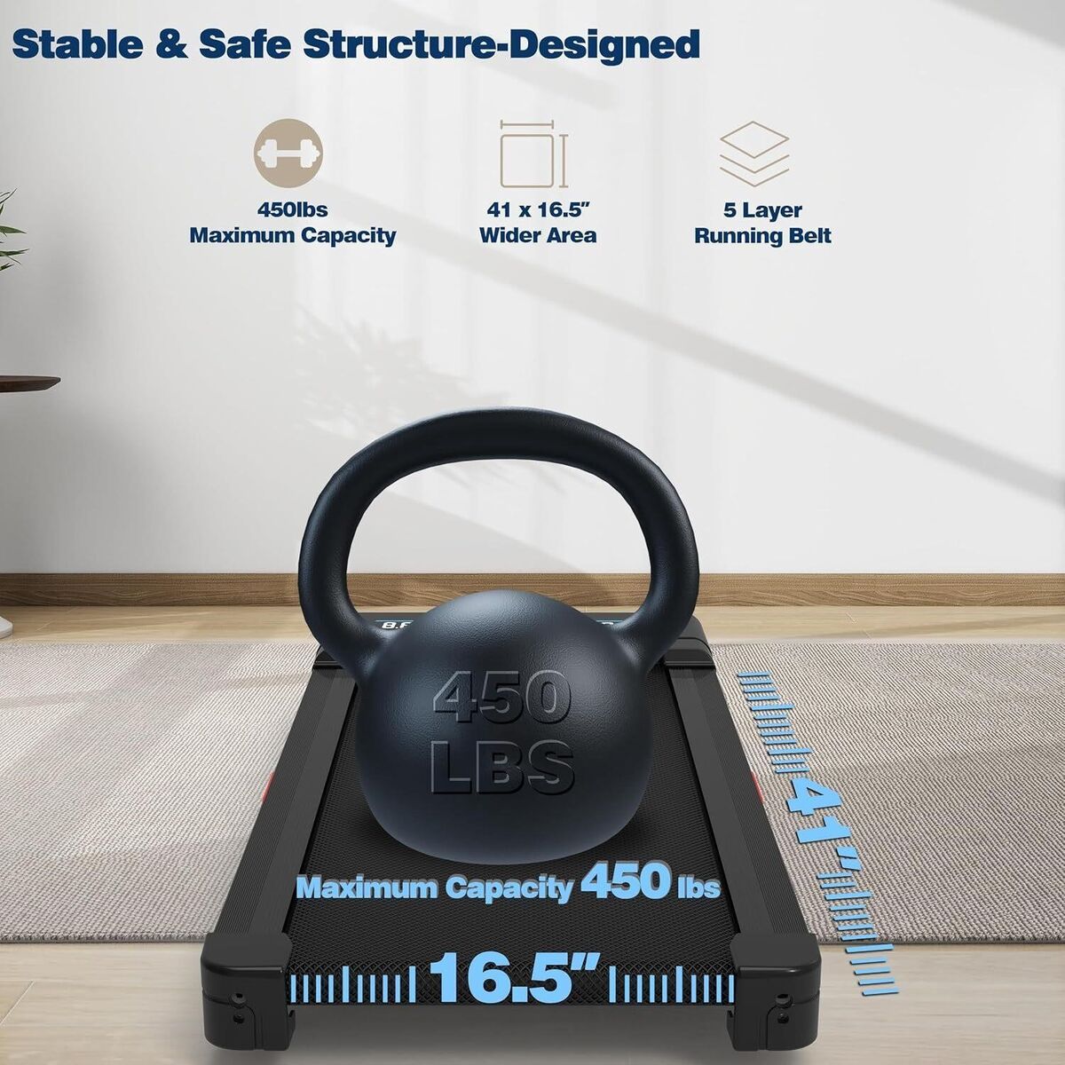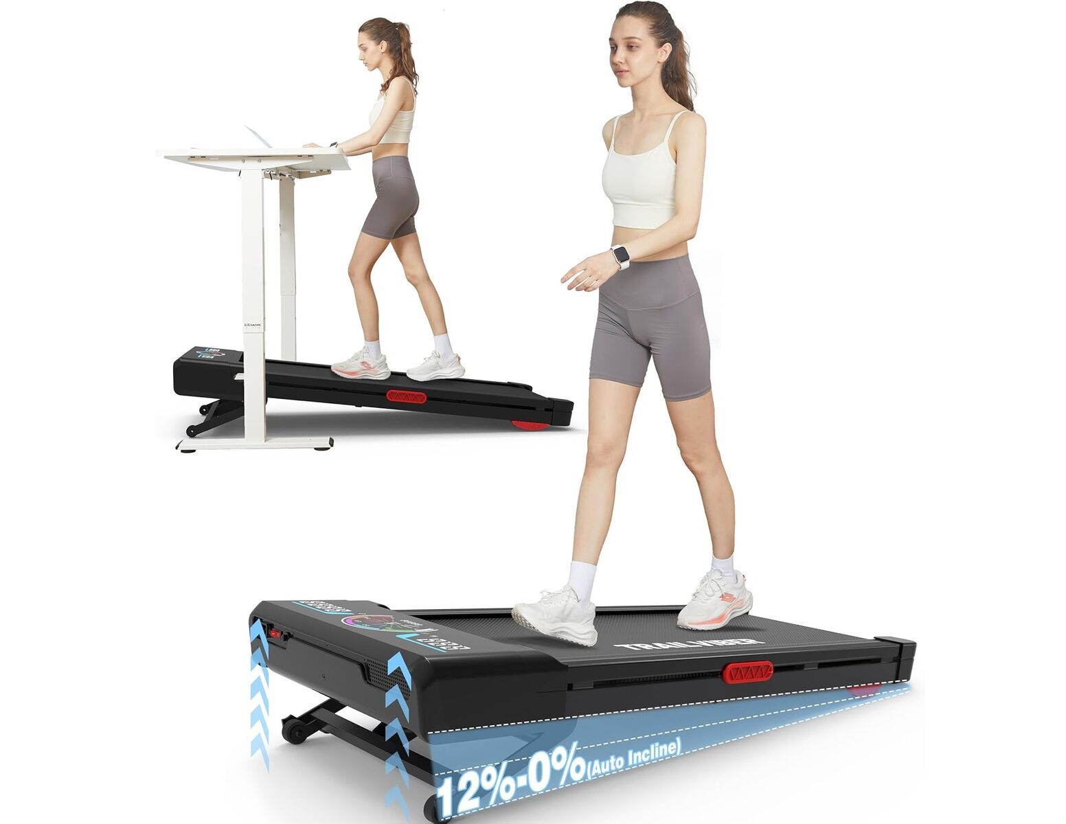 PayPalBrand new, still in box Retailer's Price: $449.00 My Price:$ 165 Retail Title: Walking Pad Treadmill with 12% 9-Level Auto Incline, 450 lbs Capacity RGB LED Screen, Bluetooth Speaker Under Desk Treadmill, Compact Treadmills for Home Hiking Retailer Website: https://a.co/d/05WoXHka Retailer Description: Brand TRAILVIBER Color Carbon Black Product Grade Commercial Grade Treadmill Product Dimensions 48D x 21W x 6H Item Weight 44 Pounds Material Alloy Steel Maximum Speed 4 Miles per Hour Special Feature Adjustable Height, Auto Incline, Compact Design, Heavy Duty, Portable Recommended Uses For Product Indoor Cardio Training, for Walking, Jogging, Hiking, and Running at Apartment, Office, and Home About this item 12% 6° 9-Level Auto Incline Treadmills for Home - Enhance Workout EfficiencyThe Trailviber under desk treadmill has an updated 12% 9-level true 6° auto incline function, unlike traditional walking pad treadmills. You can automatically adjust the incline level with a button to burn 3 times more calories. This feature allows you to enjoy the experience of hiking and mountain climbing at home, even on rainy or foggy days. Heavy Duty 450 lbs Weight Capacity Auto Incline Walking Pad TreadmillOur stable, sturdy & safe structure-designed treadmill with auto incline is equipped with a 2.5 HP smooth powerful motor, ensuring high-performance operation and supporting a maximum weight capacity of 450 lbs. We want to make you feel very steady and not wobbly at all. Upgraded Bluetooth Module with Interactive FitYo App IntegrationElevate every workout with an upgraded Bluetooth module. Seamlessly connect to FitYo—an immersive app that transforms your home into a virtual training world with subscription-free courses—while streaming high-fidelity audio. Driven by a quiet 2.5 HP motor, this walking pad treadmill creates the ultimate fusion of silent performance and motivational sound, making every auto incline stride an inspiring rhythm. Bigger & Brighter RGB LED Screen & Triple Cushioned Structure Design - Knees ProtectionIt is designed with a bigger and brighter RGB LED screen for each one of you. You can read speed, calories, time, incline level, distance you walk or run with speeds from 0 to 4.0 mph. And it has a heavy duty double-deck construction, 4 upgraded silicone shock absorption points, and 5-layer anti-slip running belts effectively reduce joint impact and protect your knees. Human-Centered SupportEngineered for excellence with a 12% auto incline and 450 lbs weight capacity. But what truly sets us apart is our 24/7 human support - real experts, no bots, always ready to help. Your satisfaction is everything to us. Try it risk-free and feel the difference. lot # 95t 02102026 8000