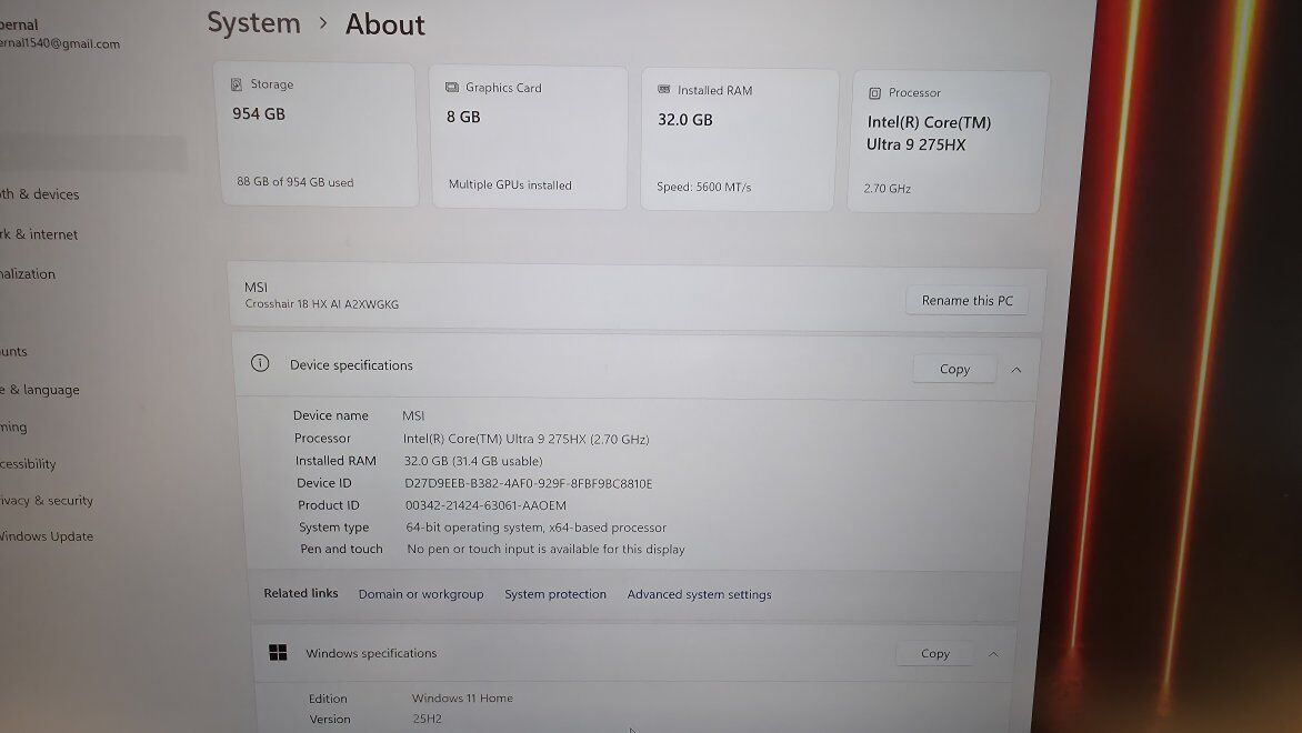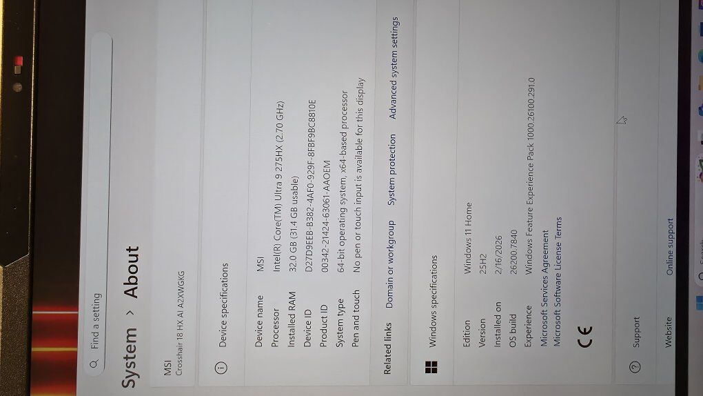 open box 2025 MSI Crosshair 18 HX AI Processor INTEL(R) CORE (TM) Ultra 9 275HX (2.70 GHz ) installed Ram 32 GB system type 64-bit operating system x64 bassed Processor edition windows 11 Home Version 25H2 storage 954GB graphics card 8GB installed Ram 32GB Retails for 3,000+ asking 2,000 due to a emergency if not it wouldnt be for sale especially at this price taking a 1,000 loss