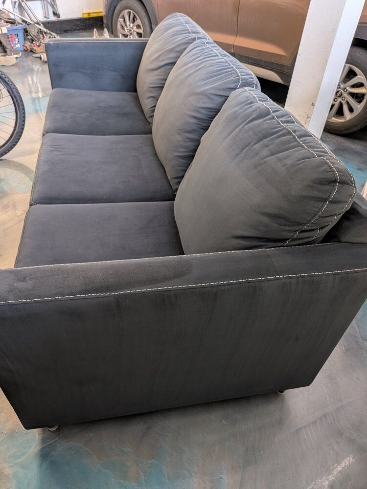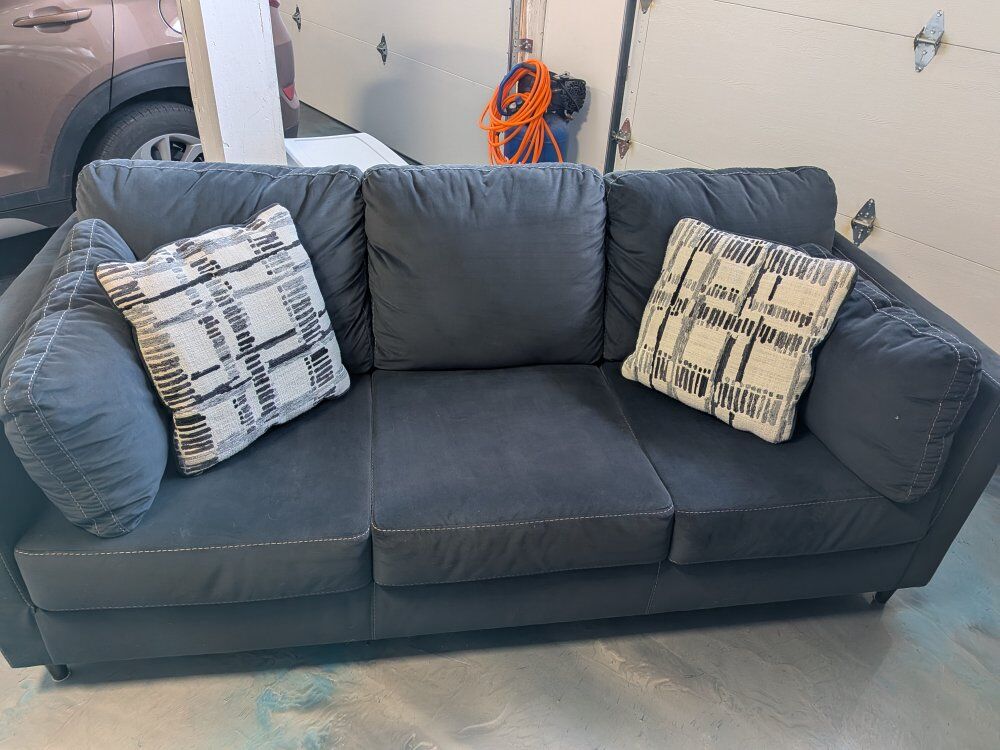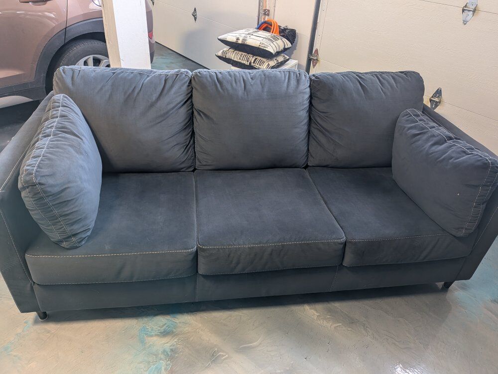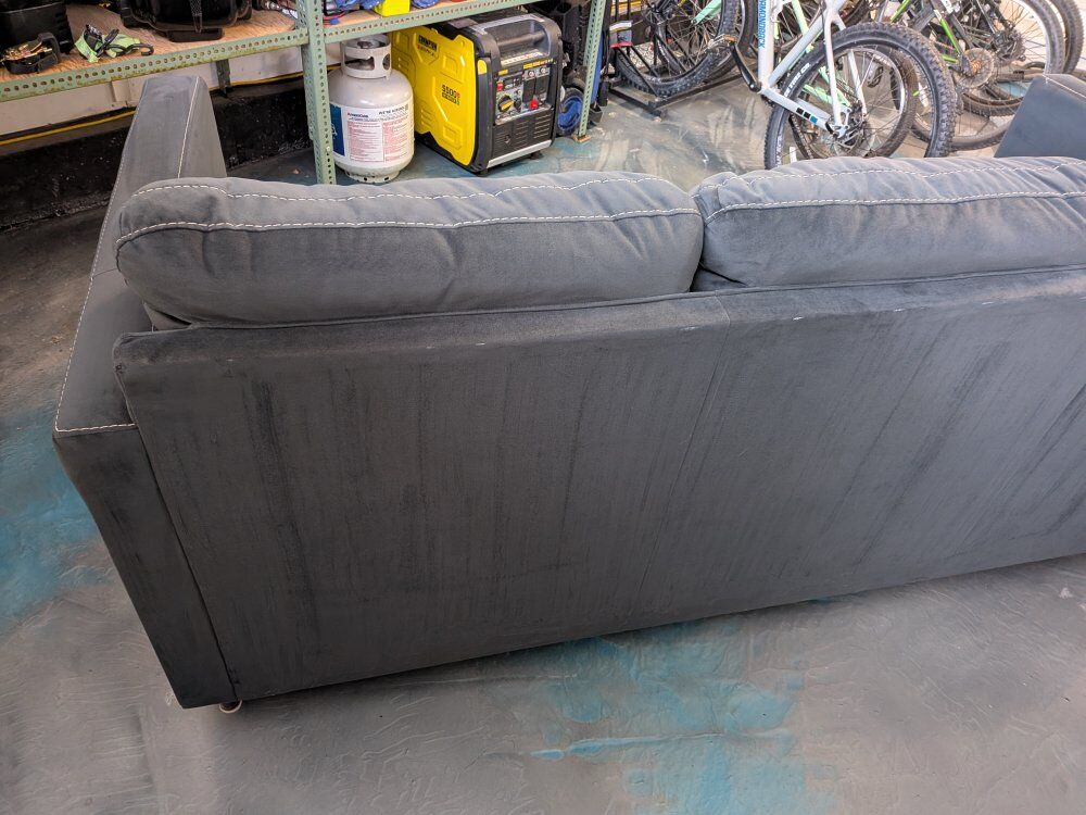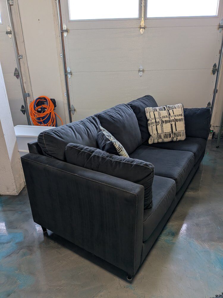 VenmoLooking to sell our couch as we upgraded to a leather set. About 4 years old, originally from Ashley Furniture. For the last three years it's barely been used as it was in our living area by the piano, where we would visit with guests. I just vacuumed the whole couch, and there are some really small spots that just need a quick wipe with a damp rag, but overall in really good condition. I included pics of the back of the couch where some rubbing occurred just from being up against a wall. Non smoking house, we do have dogs but they are not allowed on the furniture. Couch is high enough for a Roomba to easily go under it. Legs screw on/off.