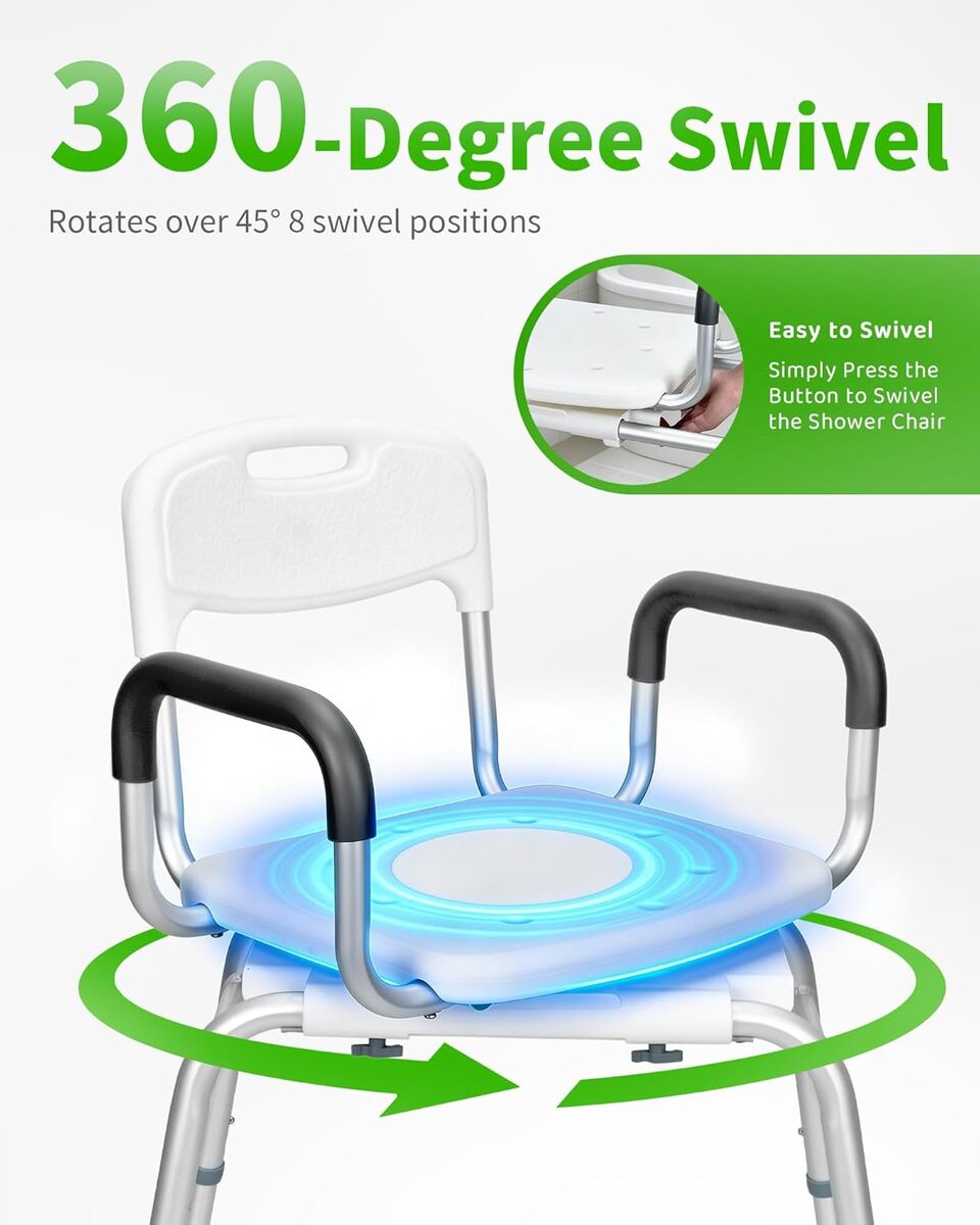 NEW IN BOX! Shower Chair for Inside Shower - Swivel Shower Chair for Elderly and Disabled - Heavy Duty Shower Seat Bathtub with Arms for Handicap, HDB-788A