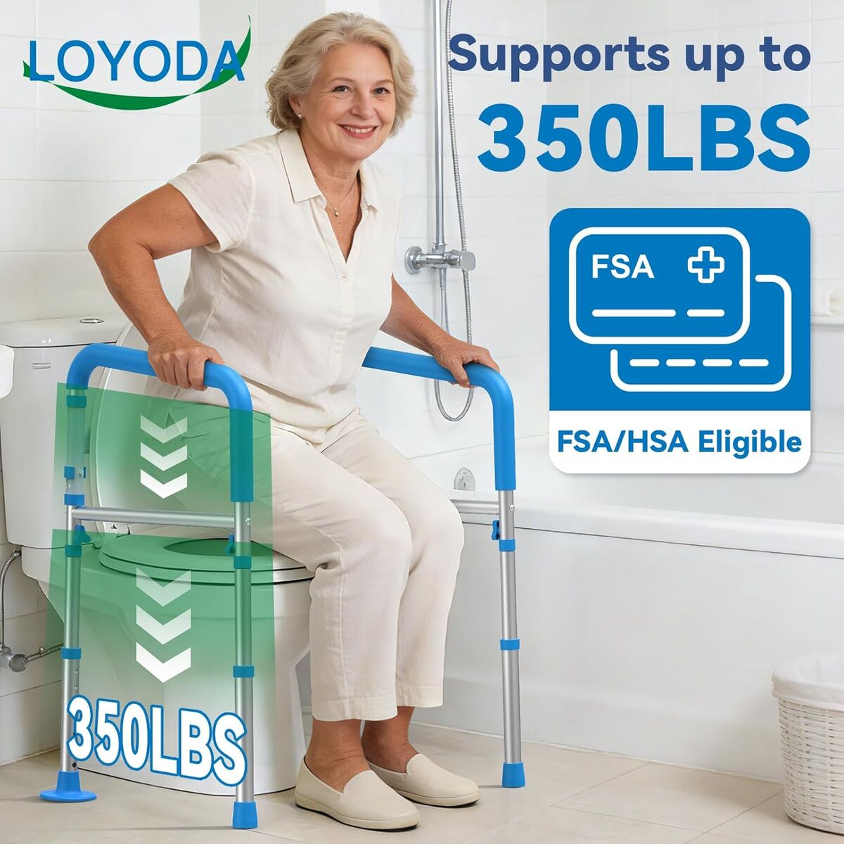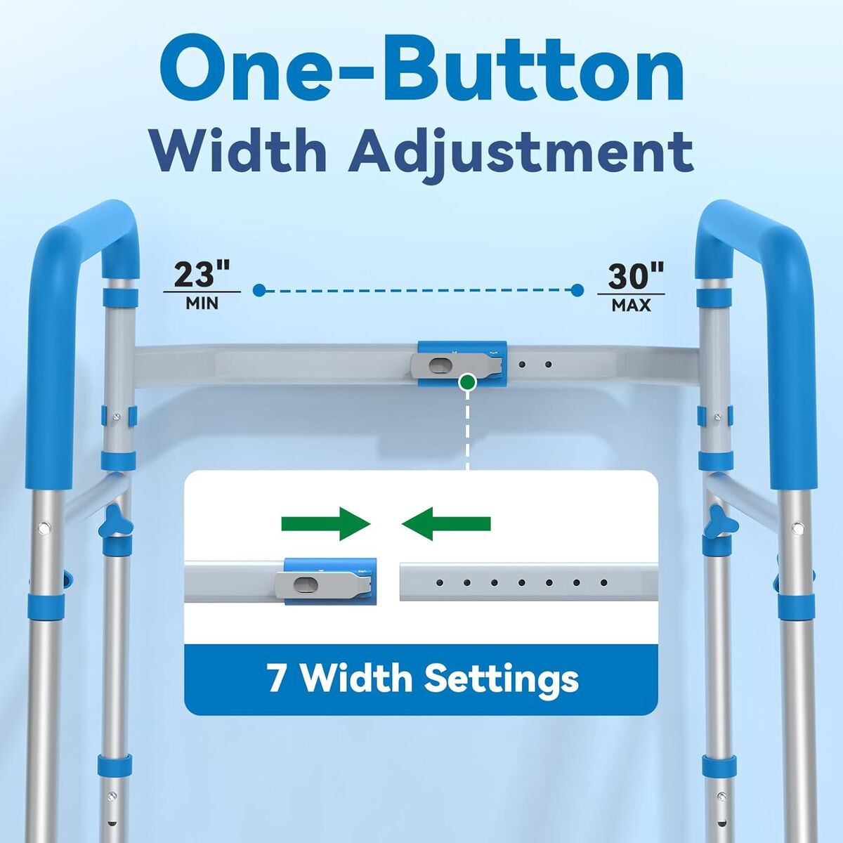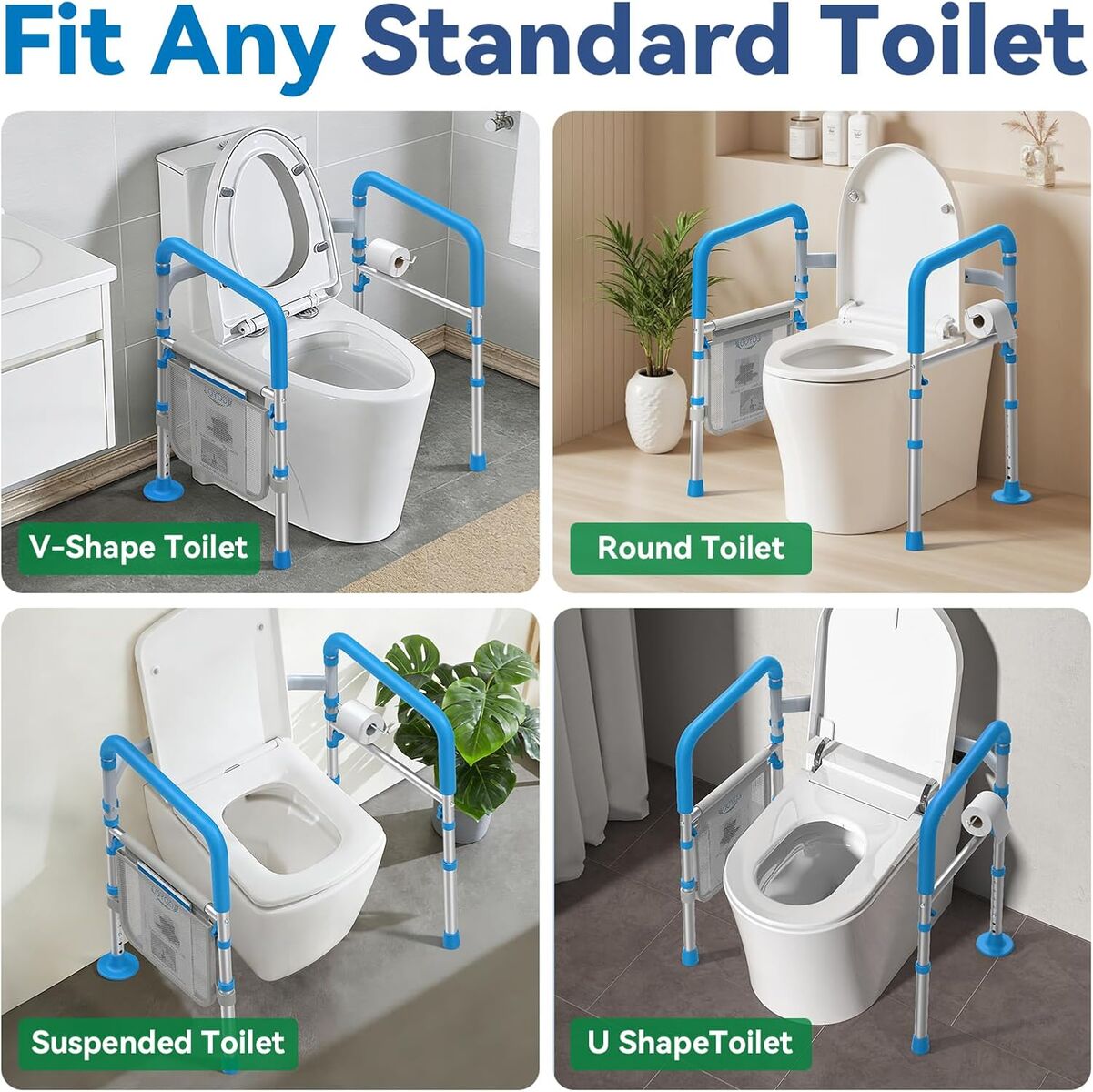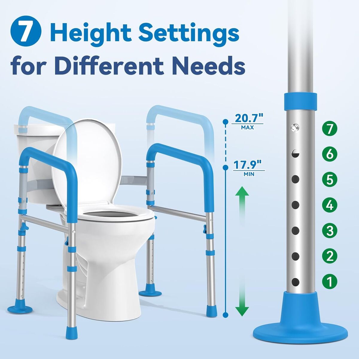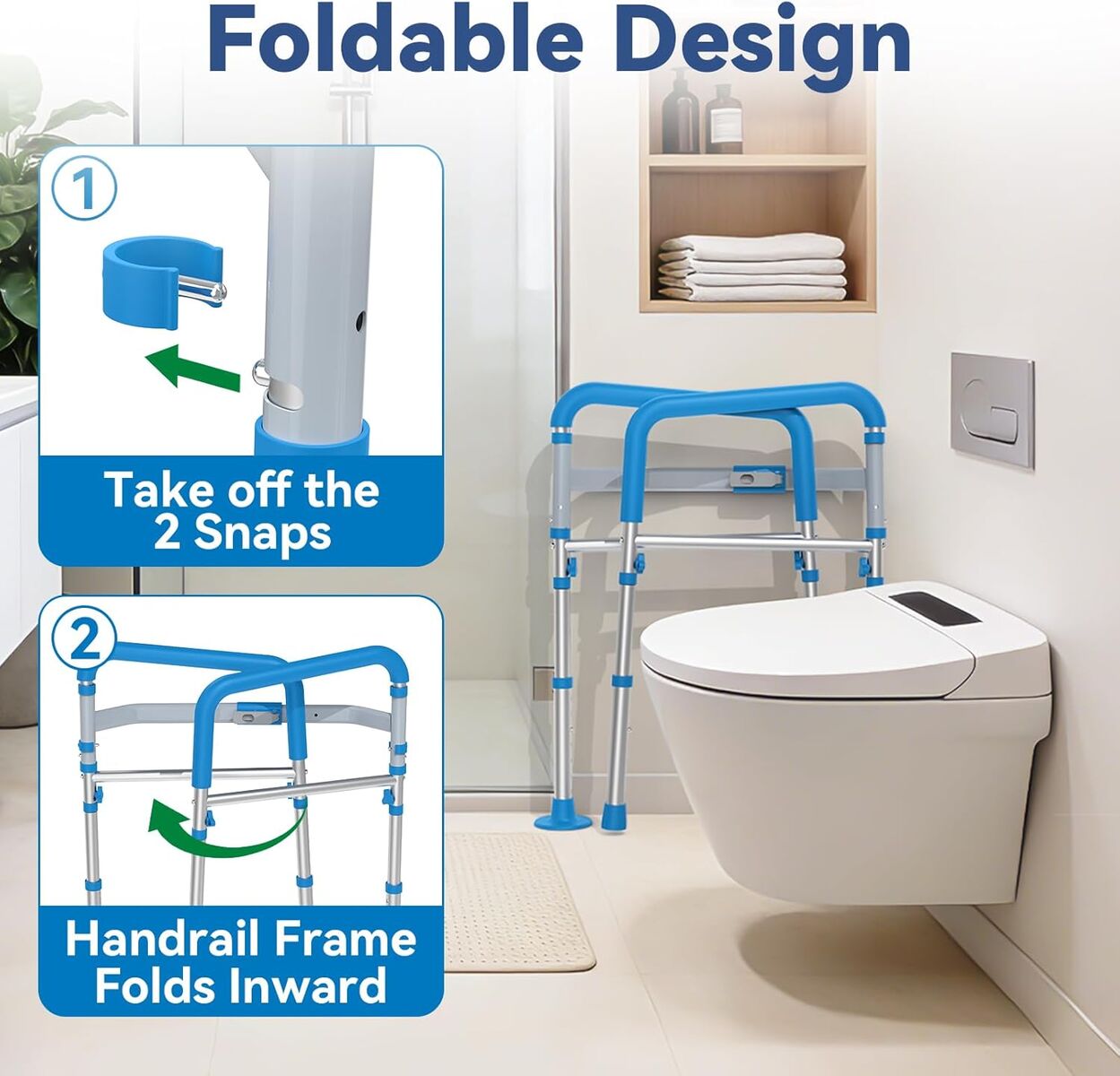 NEW IN BOX! Toilet Safety Rails for Seniors, Adjustable Height Toilet Handles for Elderly and Disabled, One-Button Width Adjustment, Foldable Handles, 350 LBS, Toilet Bars Fit Most Toilets