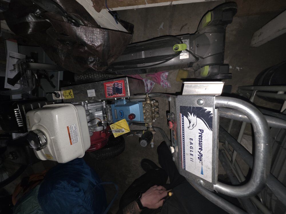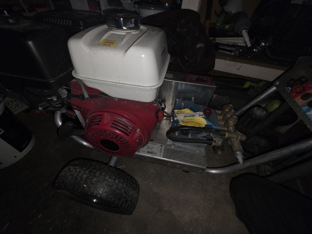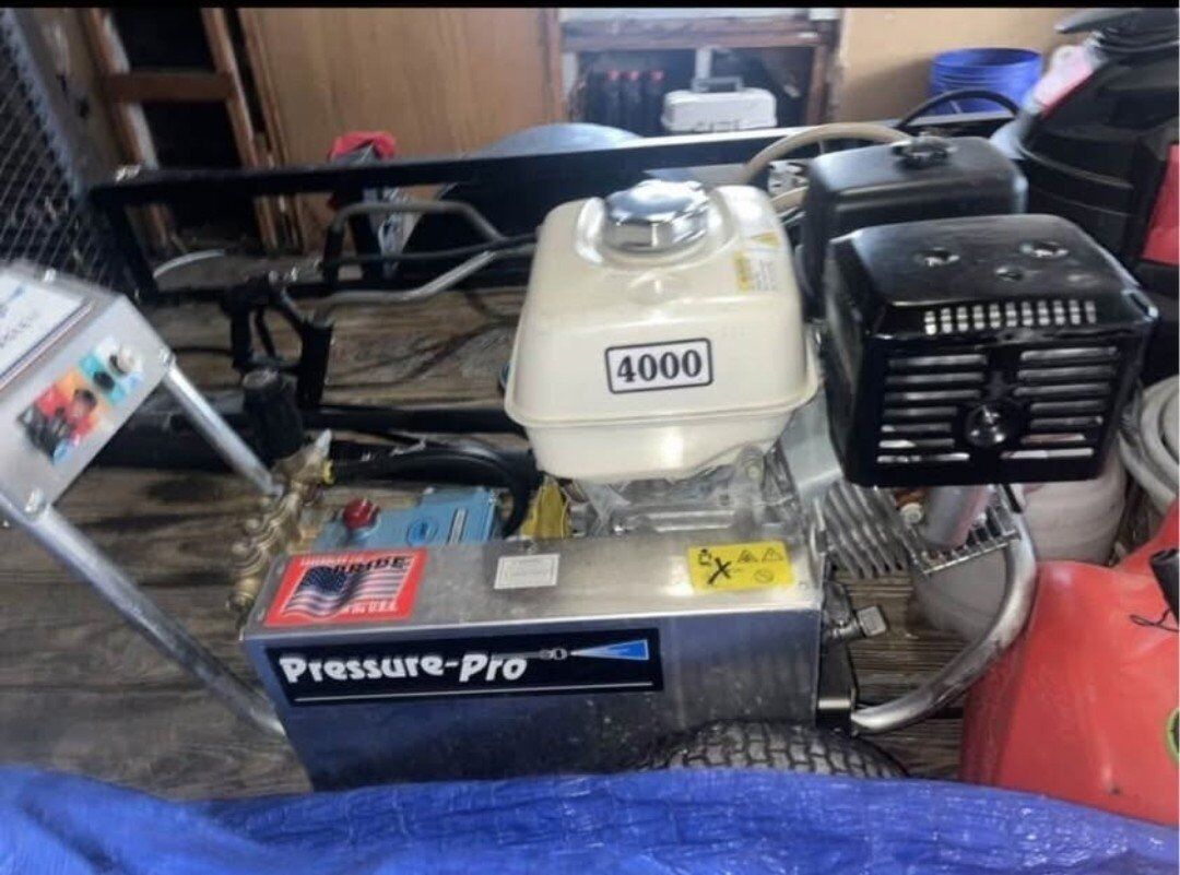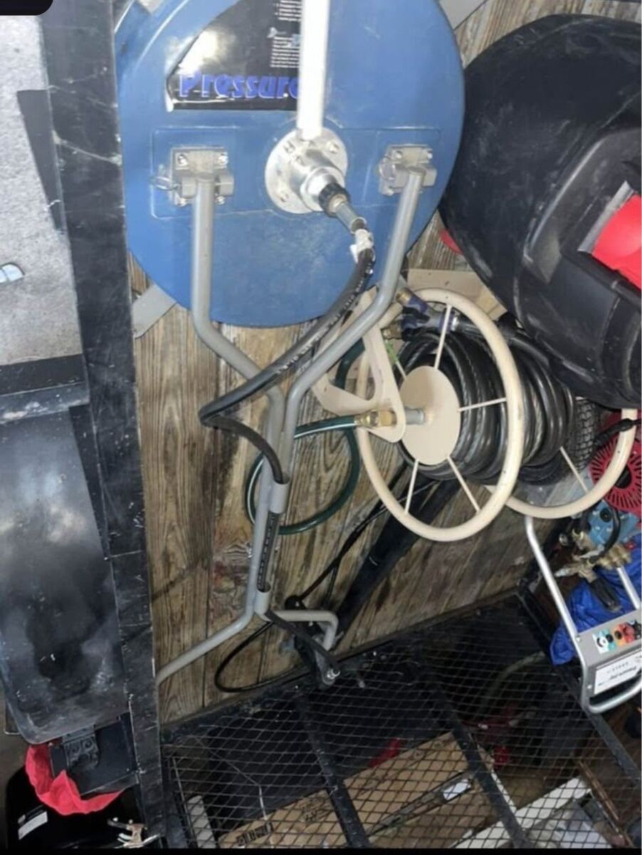 comes with all the equipments you see ; Pressure-Pro 4000 psi Gas Pressure , roof attachment, floor brush, Hose Reel, Hose Gun, over 400 ft of hose also bunch of Hose fittings. (Not the trailer)