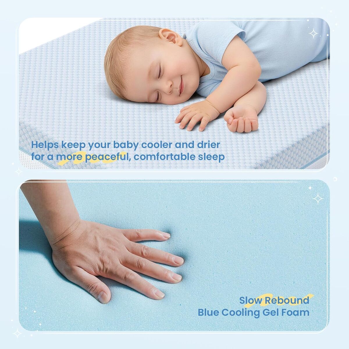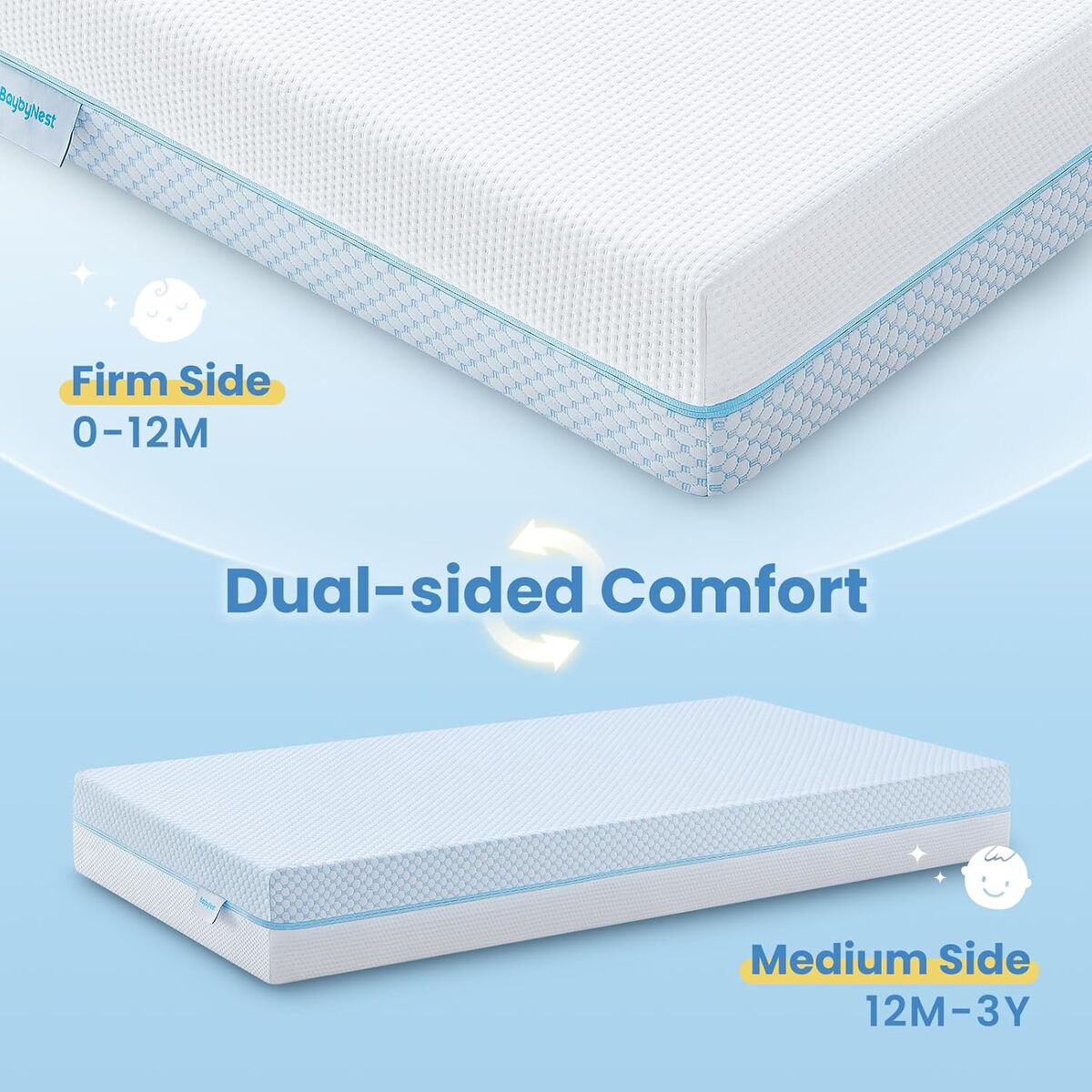 NEW IN BOX! 6" Dual Sided Crib & Toddler Mattress (Firm & Plush) - Cooling Gel Memory Foam, Lux Cooling Removable Cover for Infant All-Night Comfort - CertiPUR-US Certified (Blue & White)