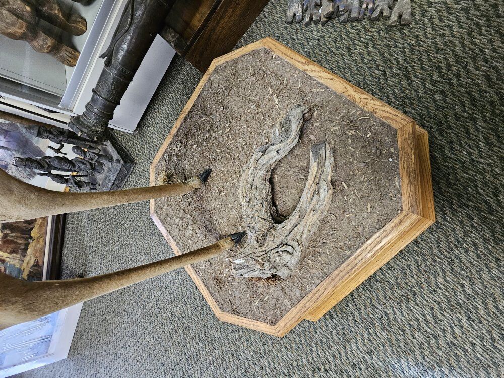 Pose: Rare full-standing vertical mount on a custom wooden hexagonal base with faux-terrain groundwork.