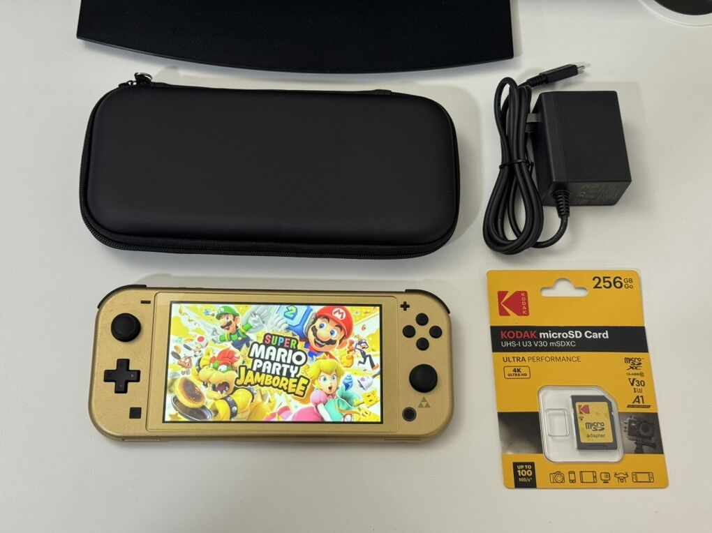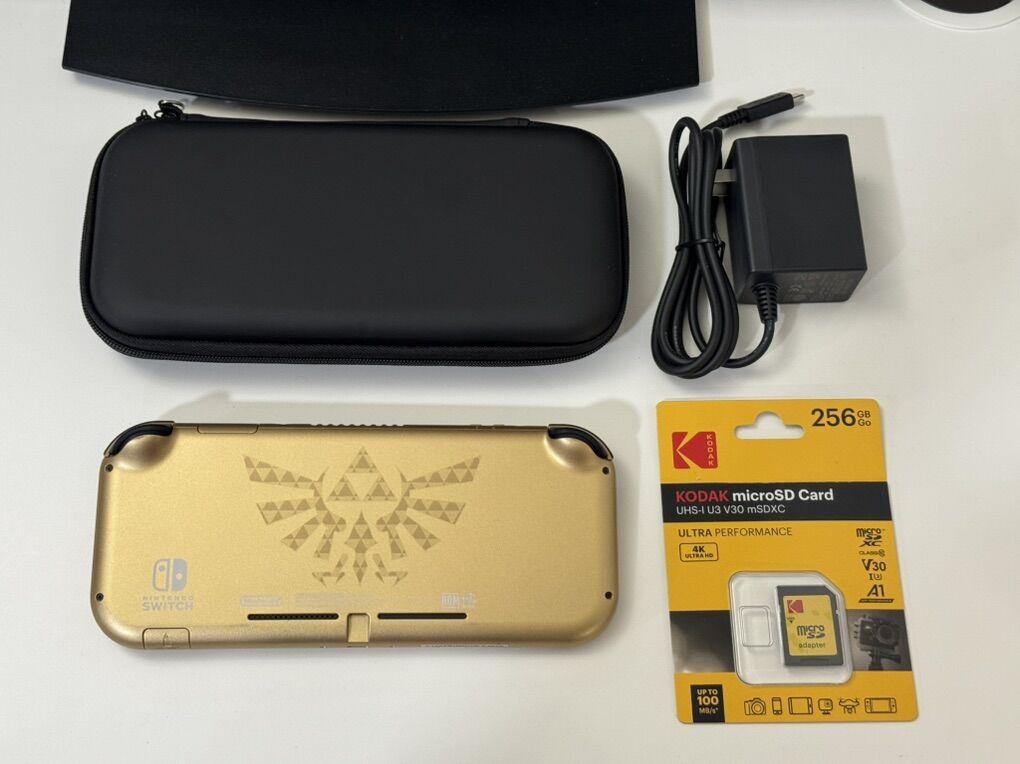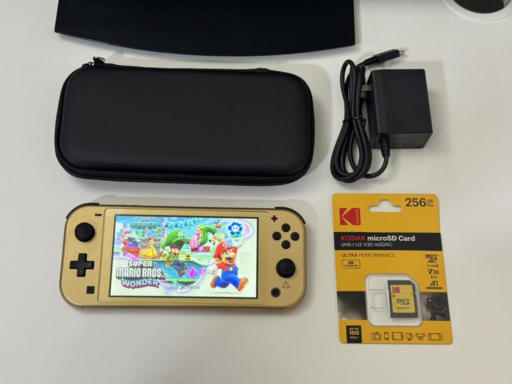 Zelle1 Nintendo Switch Lite Hyrule Edition Modded HwFly Chip 1 Micro Sd Card Kodak 256Gb Loaded 1 Charger 1 Carrying Case