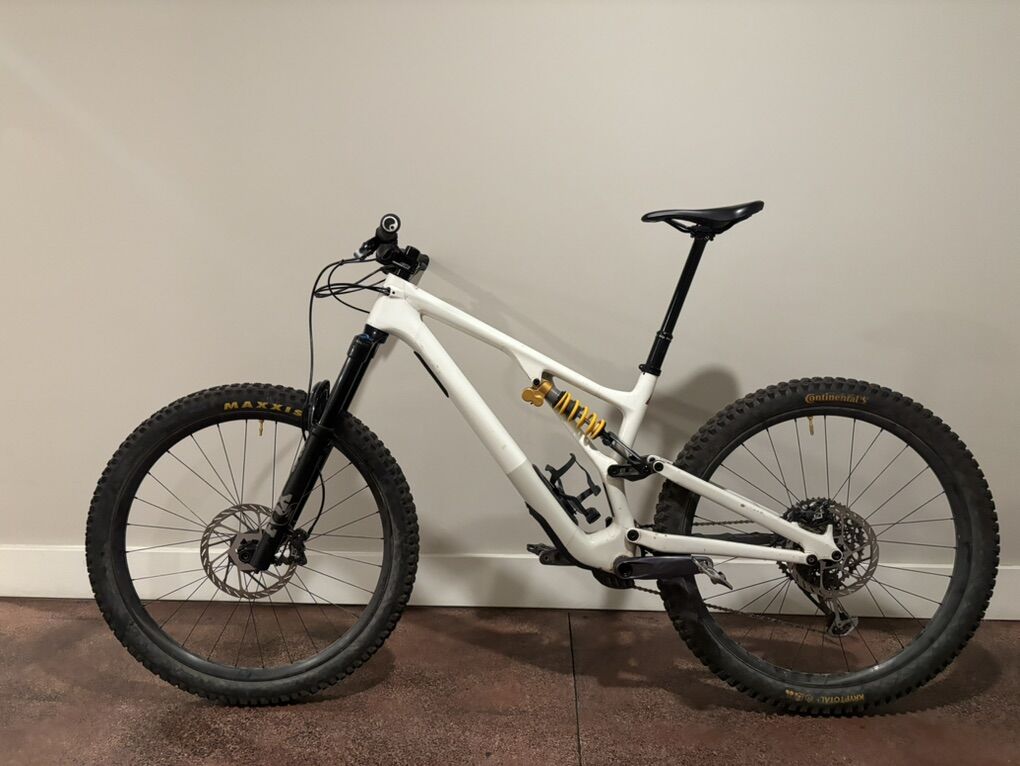 For sale I have my 2023 Stumpjumper Evo S5. This was originally an Expert build but most parts have been upgraded over time. The bike has has a full coverage RideWrap kit installed since it was built. Any scrapes and bumps you see in the photos are wrap damage, the paint underneath is in nearly new condition. The only exception to this is a scrape from chain drop that is covered by a chainstay protector, it is nothing out of the ordinary and just some paint scrape. Mechanically, the bike is in great shape with no major issues. New brake pads have been recently installed and chains have always been replaced before excessive wear. Suspension has been serviced yearly and both fork and shock went in for service last spring with minimal riding on them since. Tires, chain, and suspension have about a 1/4 of a season on them as I did not ride much last summer. Asking $3500 OBO, Hearing offers and willing to ship at buyers expense. Parts list below:
