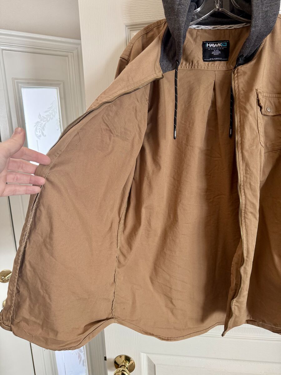 Men’s size extra large. Like new condition. Just a little wrinkled from storage. Cotton blend. Everything works like it should. Nice style. $25.