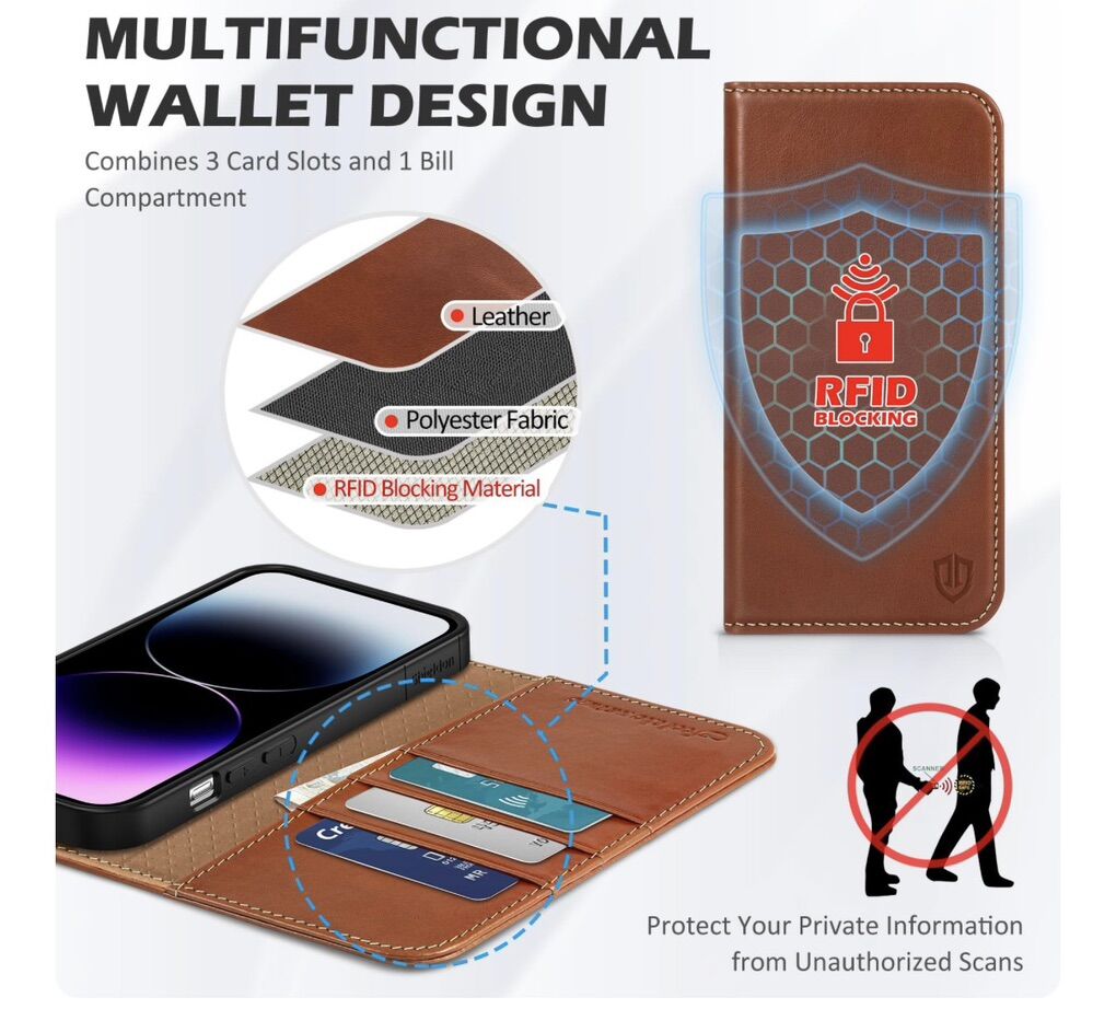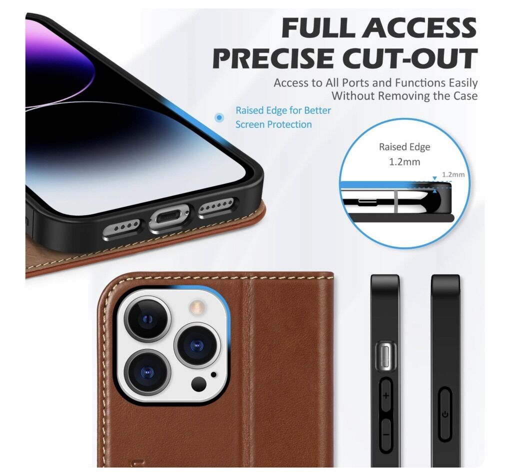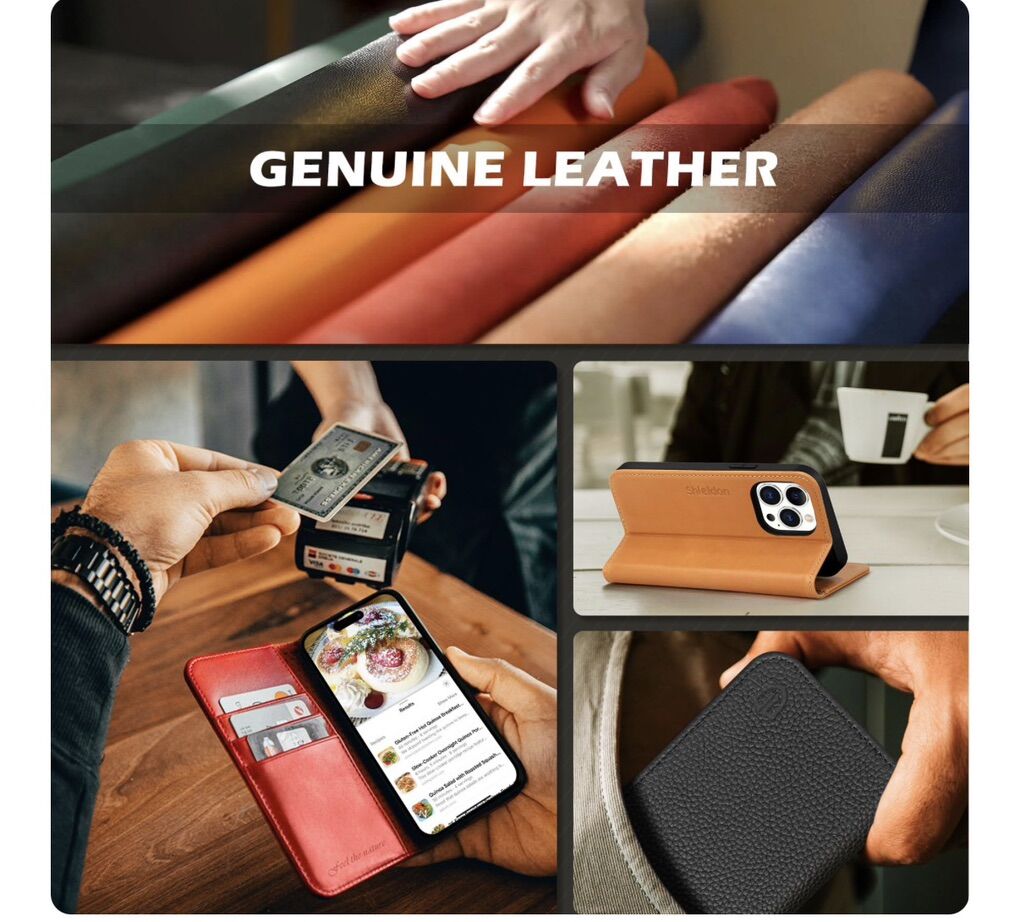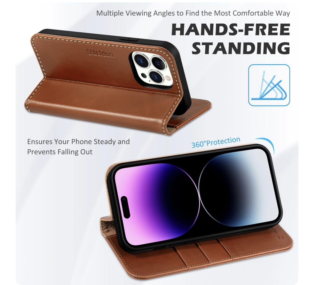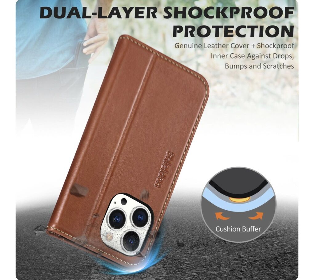 SHIELDON Case for iPhone 14 Pro Max 5G, Genuine Leather Wallet Case with Kickstand RFID Blocking Card Holder Magnetic Shockproof Compatible with iPhone 14 Pro Max 6.7 - Retro Brown