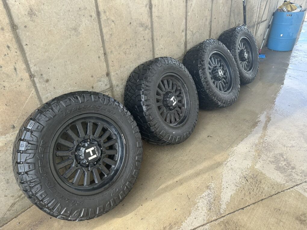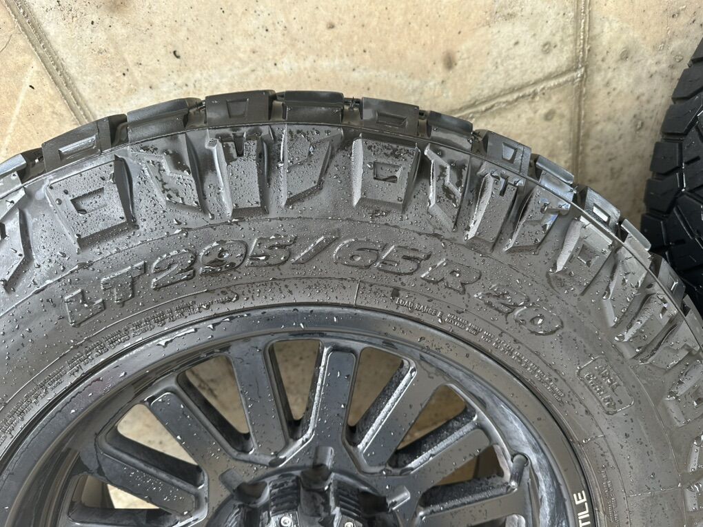 One year old wheels and tires. The wheels are flawless no curb jabs etc. are wrapped in 295 65 r20 (36x11.50) nitto ridge grapplers with approx 25k miles. Do come with chrome lug nuts