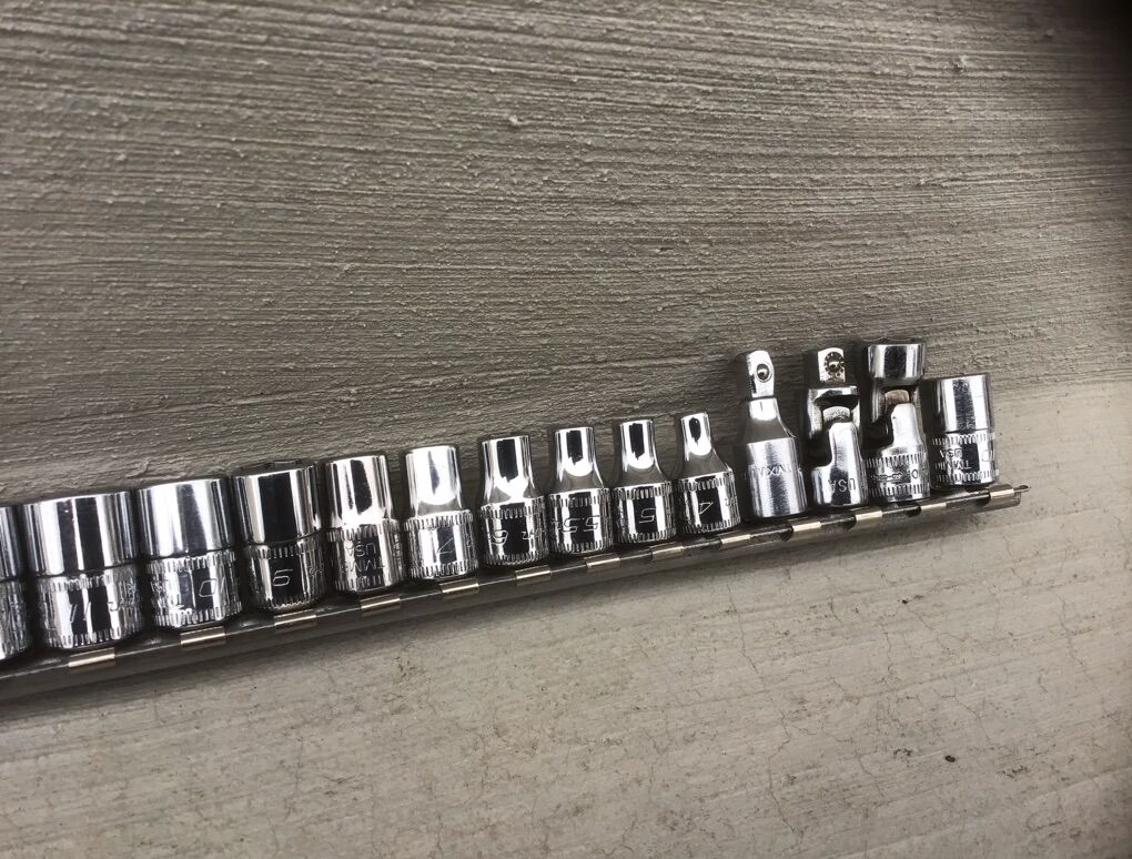 VenmoSnap-on 1/4 drive metric socket set. lightly used. 15mm, 14mm, 13mm, 12mm, 11mm, 10mm, 9mm, 8mm, 7mm, 6mm, 5.5mm 5mm, 4mm, short extension, wobble extension, wobble 10 mm, 2nd 10mm.