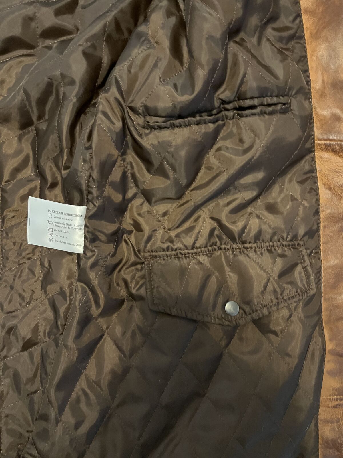 VenmoThis is a Genuine Leather Jacket, it would comfortably fit size 14-16, possibly even a size 18. It is brand new and has never been worn outside of trying it on, as seen in one of the pictures. It has 2 inner pockets, and 2 outer pockets, also seen in the pictures. I am willing to negotiate on price but because it is genuine leather I would prefer to keep it at least at $200.