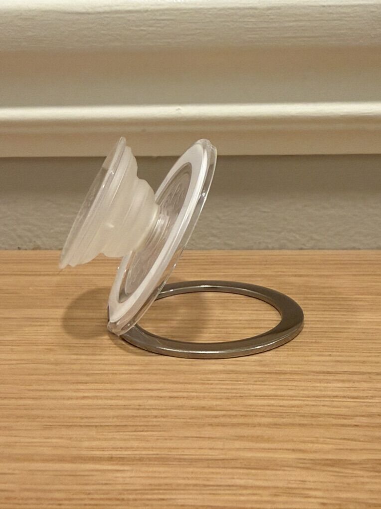 Never used magnetic phone grips from the Pop Socket brand. Espresso and gold enamel grip and clear kickstand grip that flips out to act as a stand in both portrait and landscape. Originally $40 each - asking $10 each.