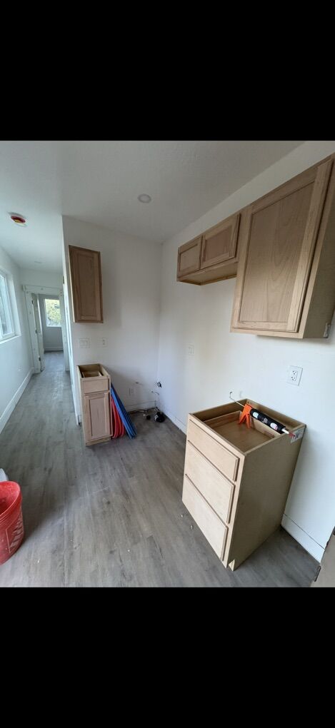 The rest of the kitchen cabinets needed which is one corner piece is already on site and just needs to be built and attached to the existing cabinets. All of the electrical is complete. Set up for a generator or connection to permanent power.