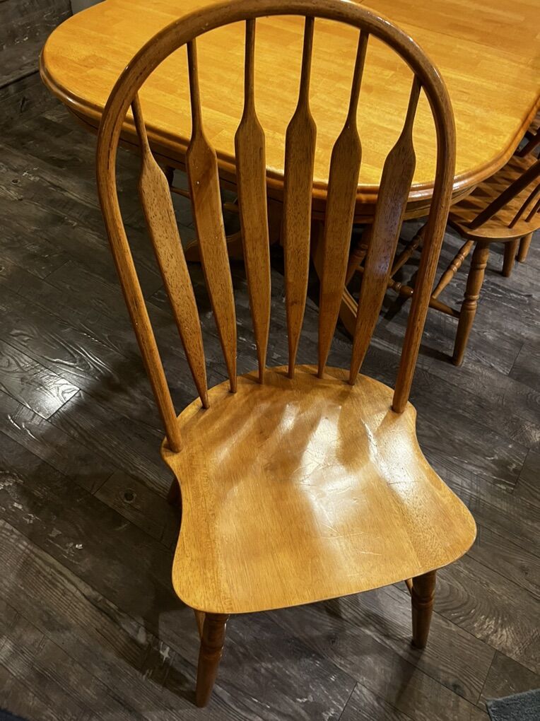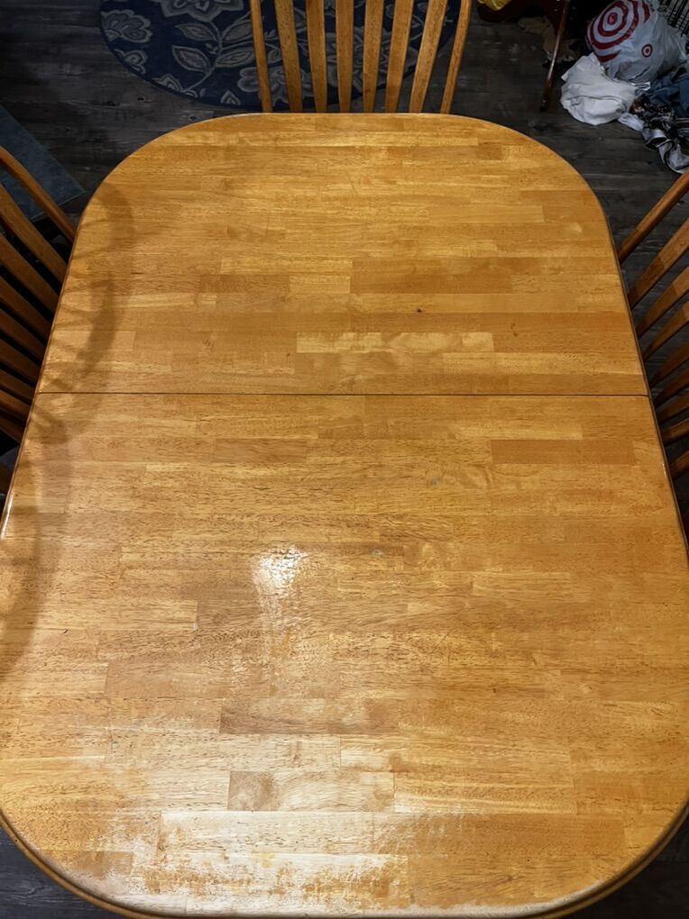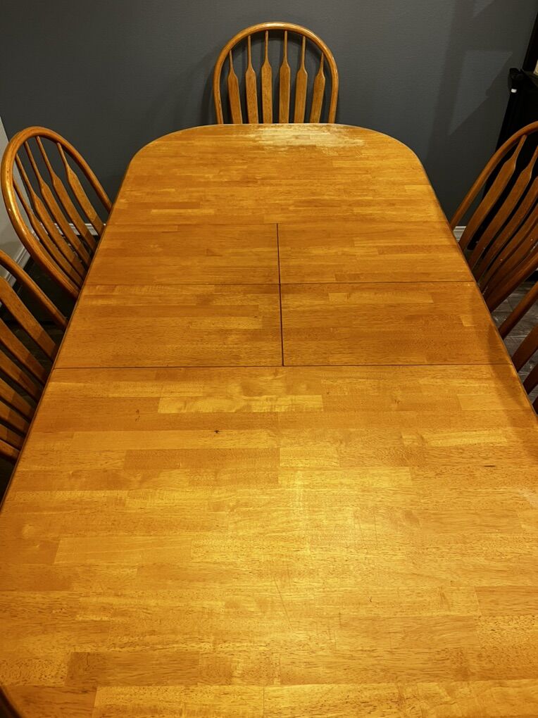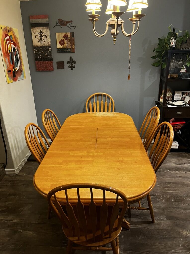 ApplePayAdjustable Table with full set of chairs The table is extended and is self storing 3 different lengths