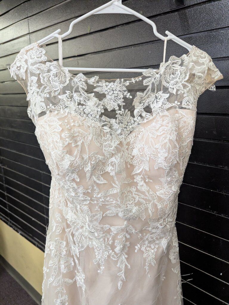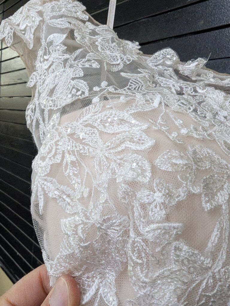 Capped sleeve mod back lace dress with a sweetheart shape wedding gown.