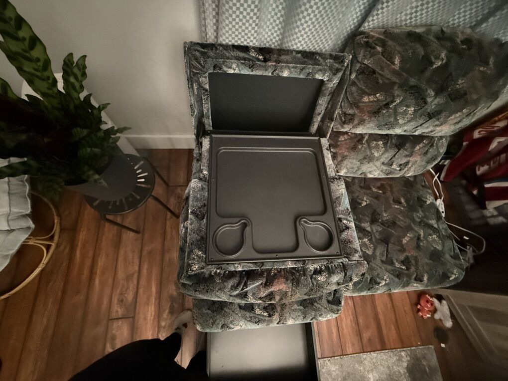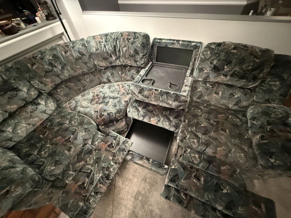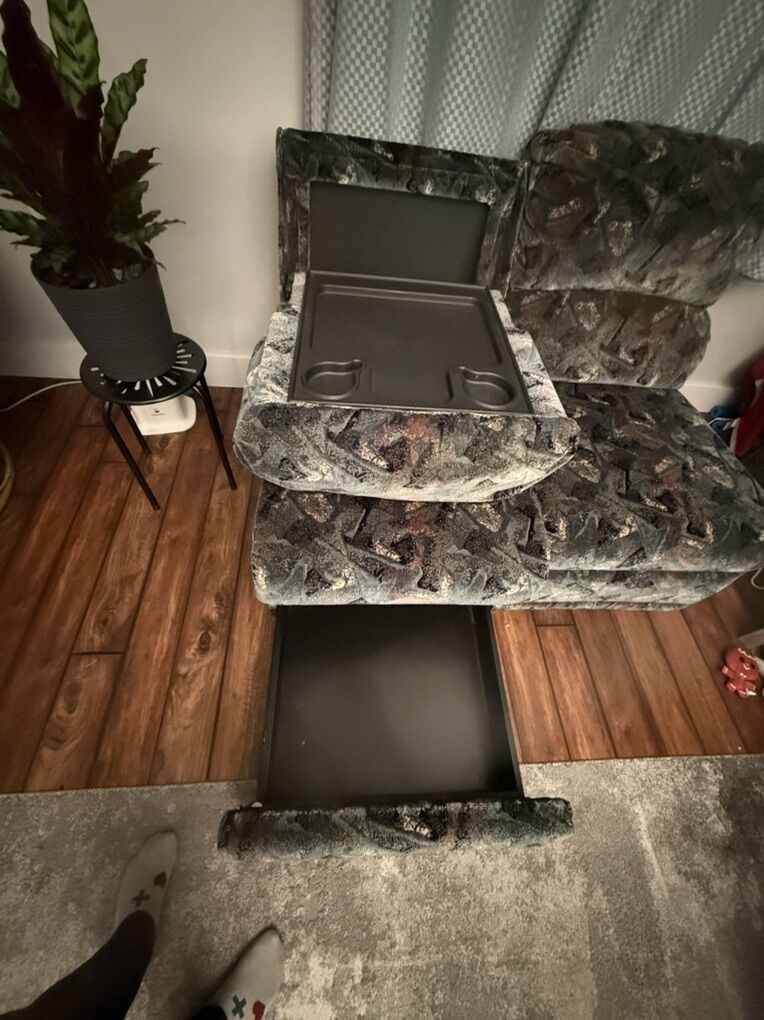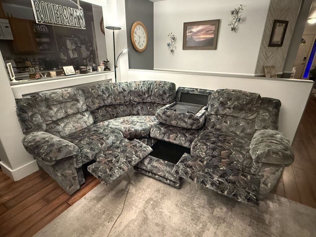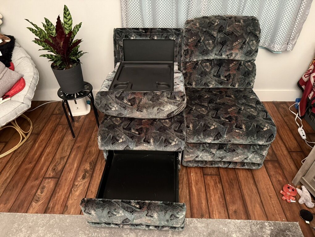 CashAppGreat condition 6 piece sectional. 2 pieces that have storage drawers, 2 pieces that fold down and have cup holders and a flat area, and 2 pieces are reclining. These pieces do not connect together but can be put in so many different configurations. A matching reclining chair.