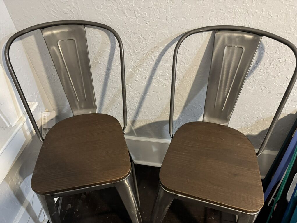 CashApp2 wood and metal barstools. Wood seats, metal backs and legs. Excellent condition. Pickup downtown SLC. No holds w/o pmt.