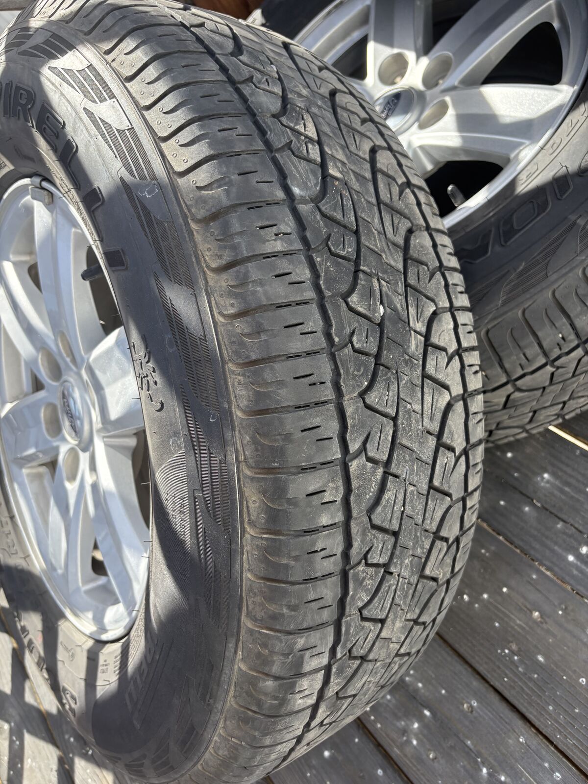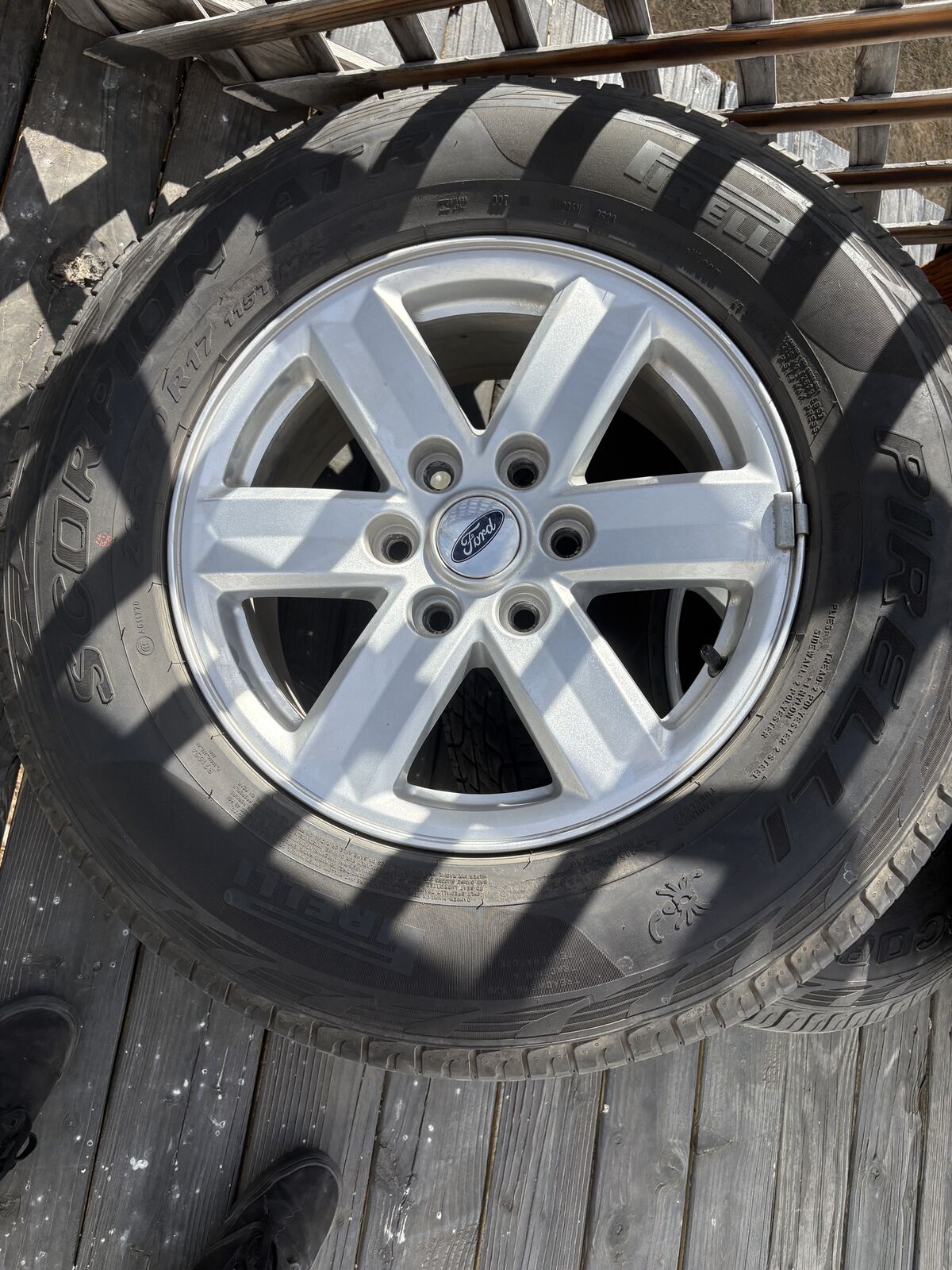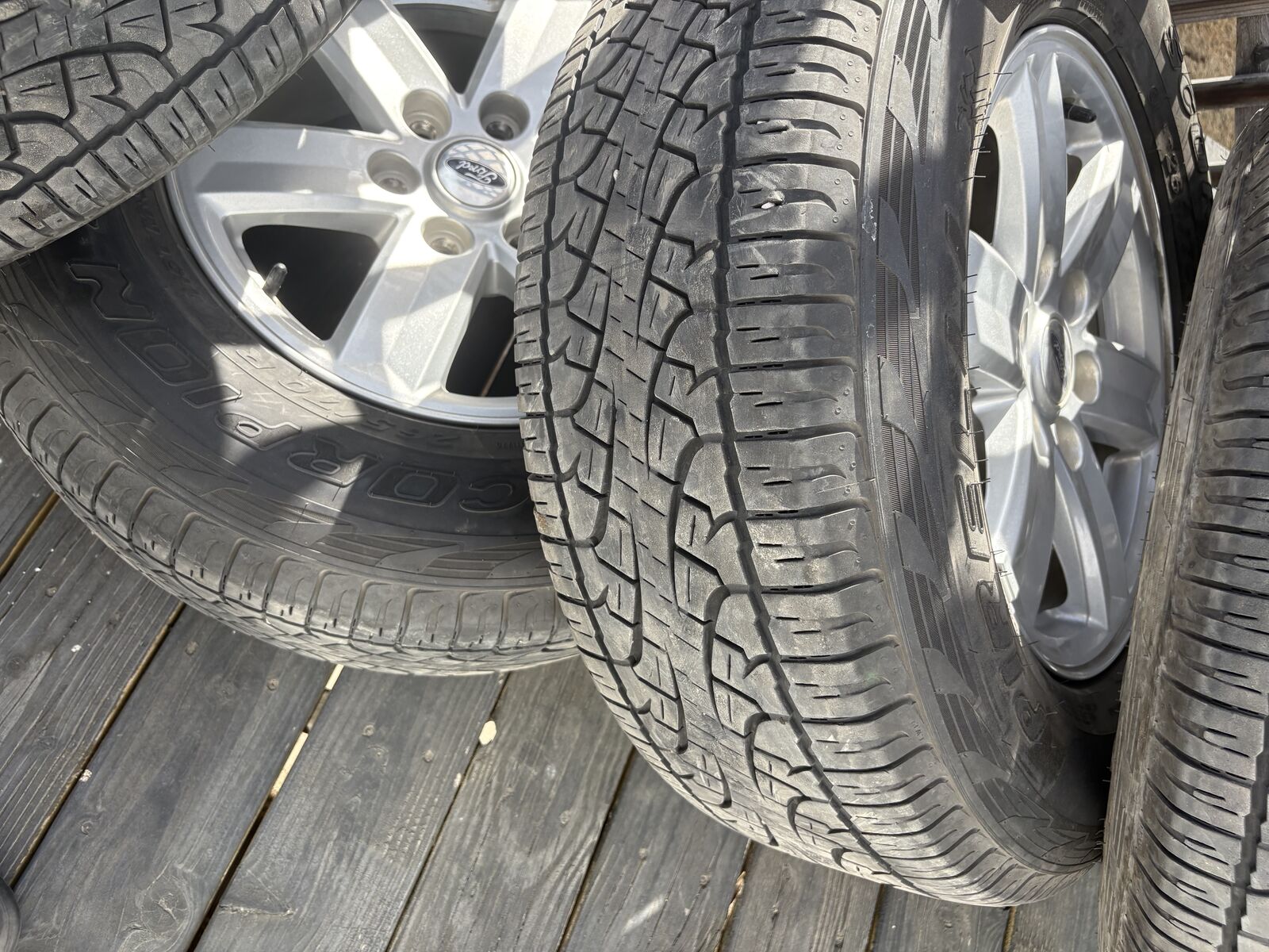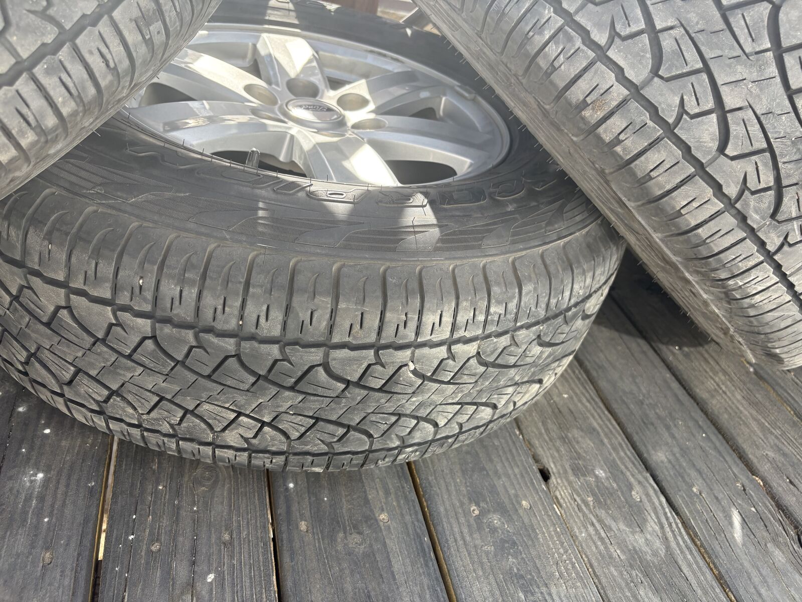 Zelle265/70R17 Selling because I bought the truck took the rims and tires off immediately after buying new rims and tires the tires are pretty much brand new. Original lugs come with set. Willing to negotiate no trades