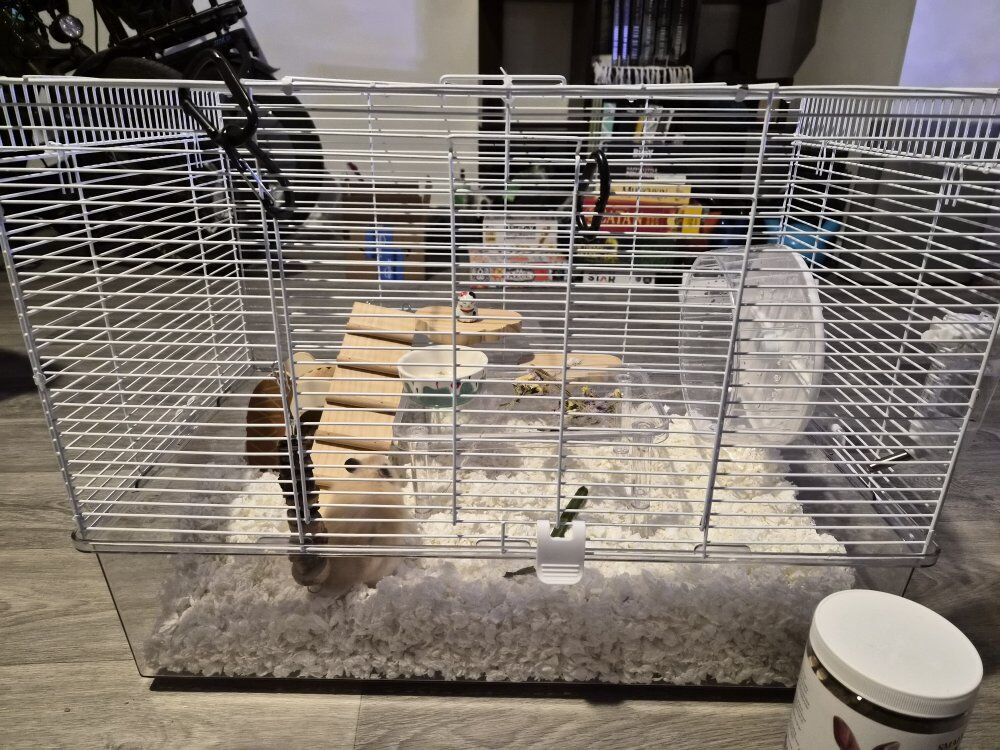 VenmoMale long haired syrian hamster with cage, food, and accessories all included.