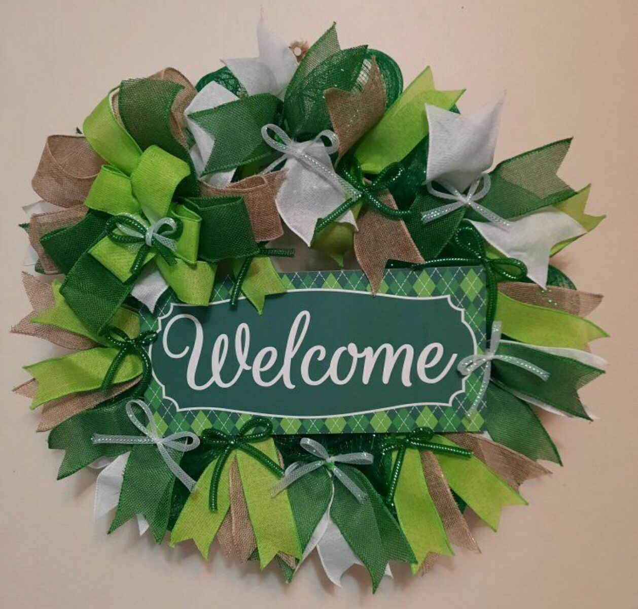 VenmoGet ready for Spring or St. Patrick's Day with this green welcome wreath! This handcrafted welcome wreath would be a cute addition to your front door.