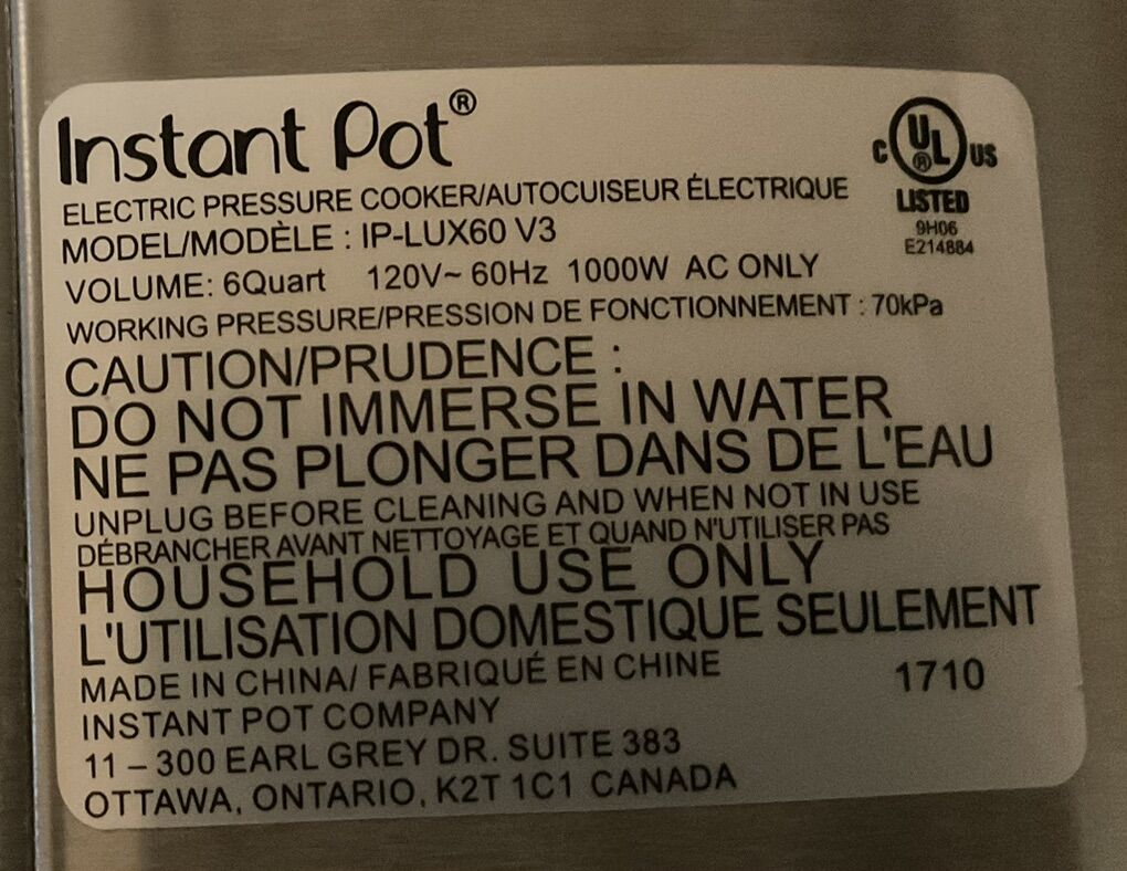 Instant Pot IP-LUX60 V3 Electric Pressure Cooker 6 QT The Instant Pot LUX60 V3 is a 6-Qt electric pressure cooker that offers 6 different cooking functions in one compact appliance. Made of stainless steel with a silver finish, this programmable cooker has a capacity of 6 quarts and operates at 1000 W of power Please take a look at my other listings