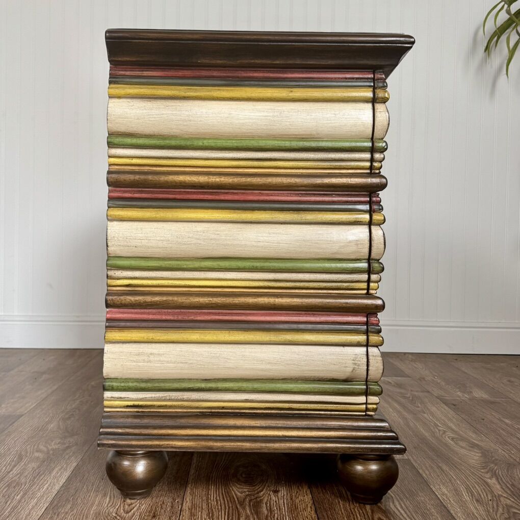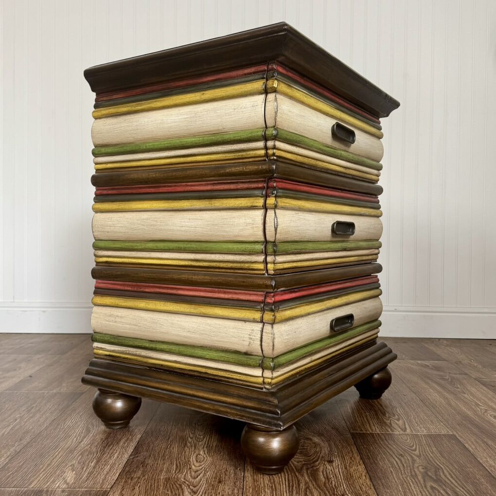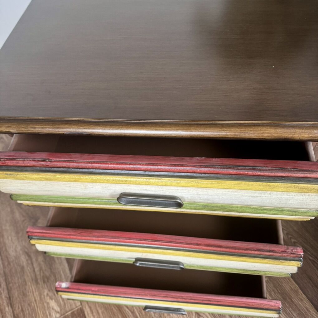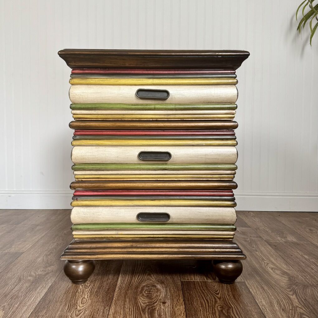 VenmoFun and unique small chest of drawers that works perfectly as a nightstand, side table, or accent piece. All three drawers glide smoothly. In very good condition with light, normal wear consistent with use. Clean, sturdy, and ready to use.
