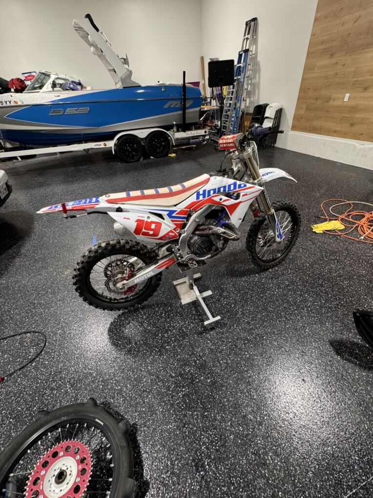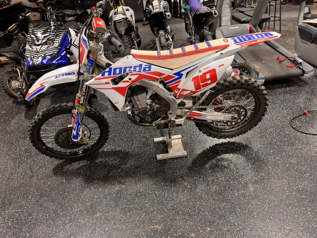 2022 CRF450R-S. This bike has been a great bike I’m just upgrading to something newer. I have done Pro action suspension and i still have the stock springs I’ll send with the bike. I also have the stock plastics I’ll send with the hike as well if you don’t like the graphic kit. I recently just had a Hinson clutch put in the bike. Bike runs great and rips. I am the original owner of this bike and have been miticulous with maintenance on this bike.