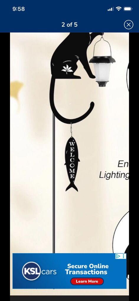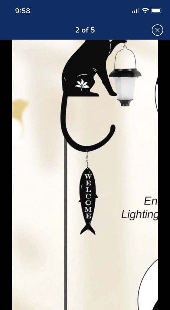 VenmoMetal Cat Stake with Solar Light Decorative Garden Stakes Cat Silhouette Holding Solar Lantern with Fish Welcome Sign for Outdoor Garden Lawn Yard Pathway Unique Gift Ideas.
