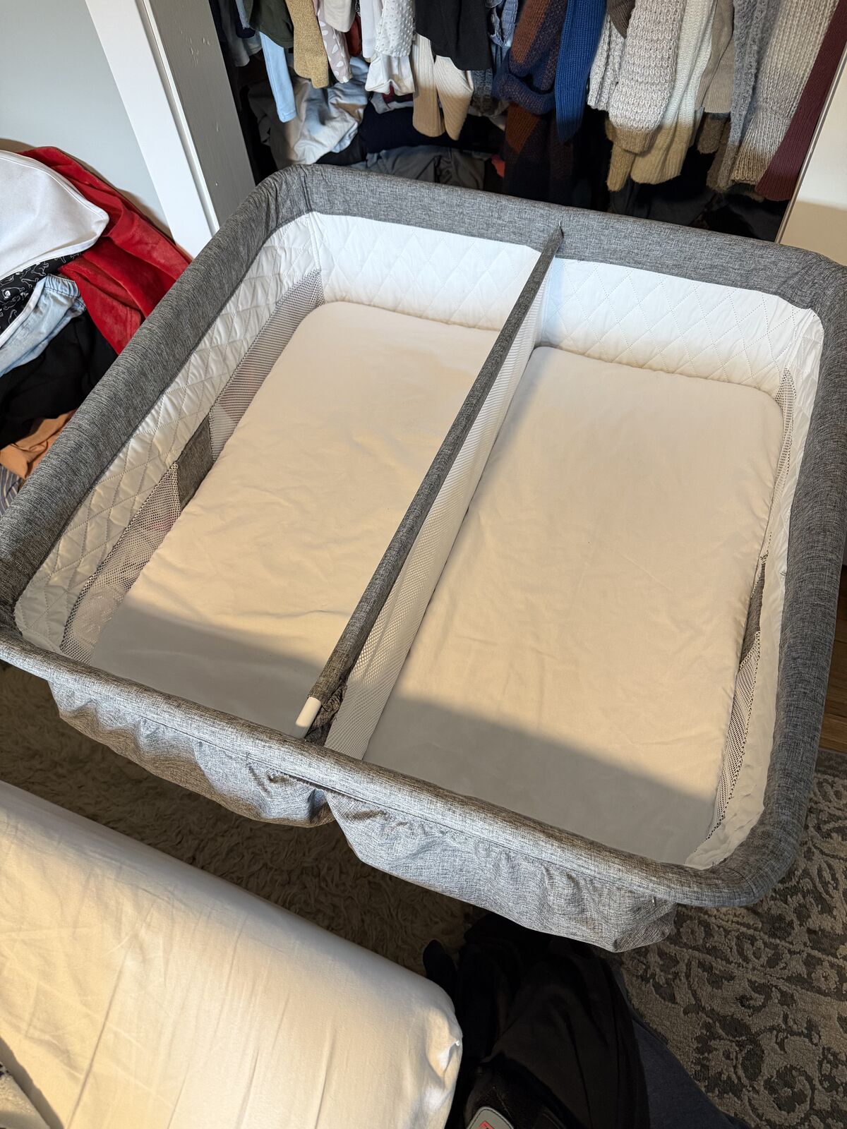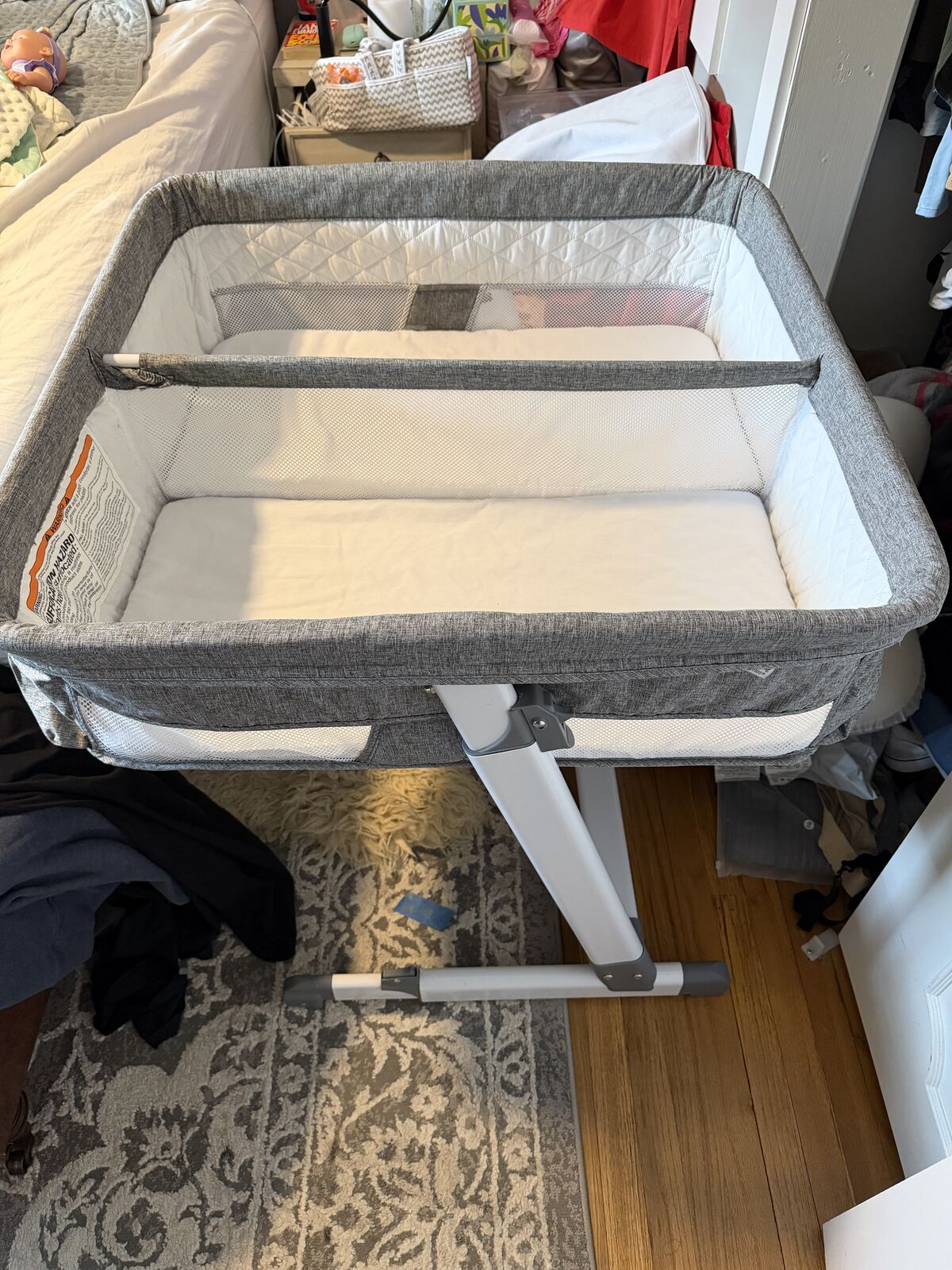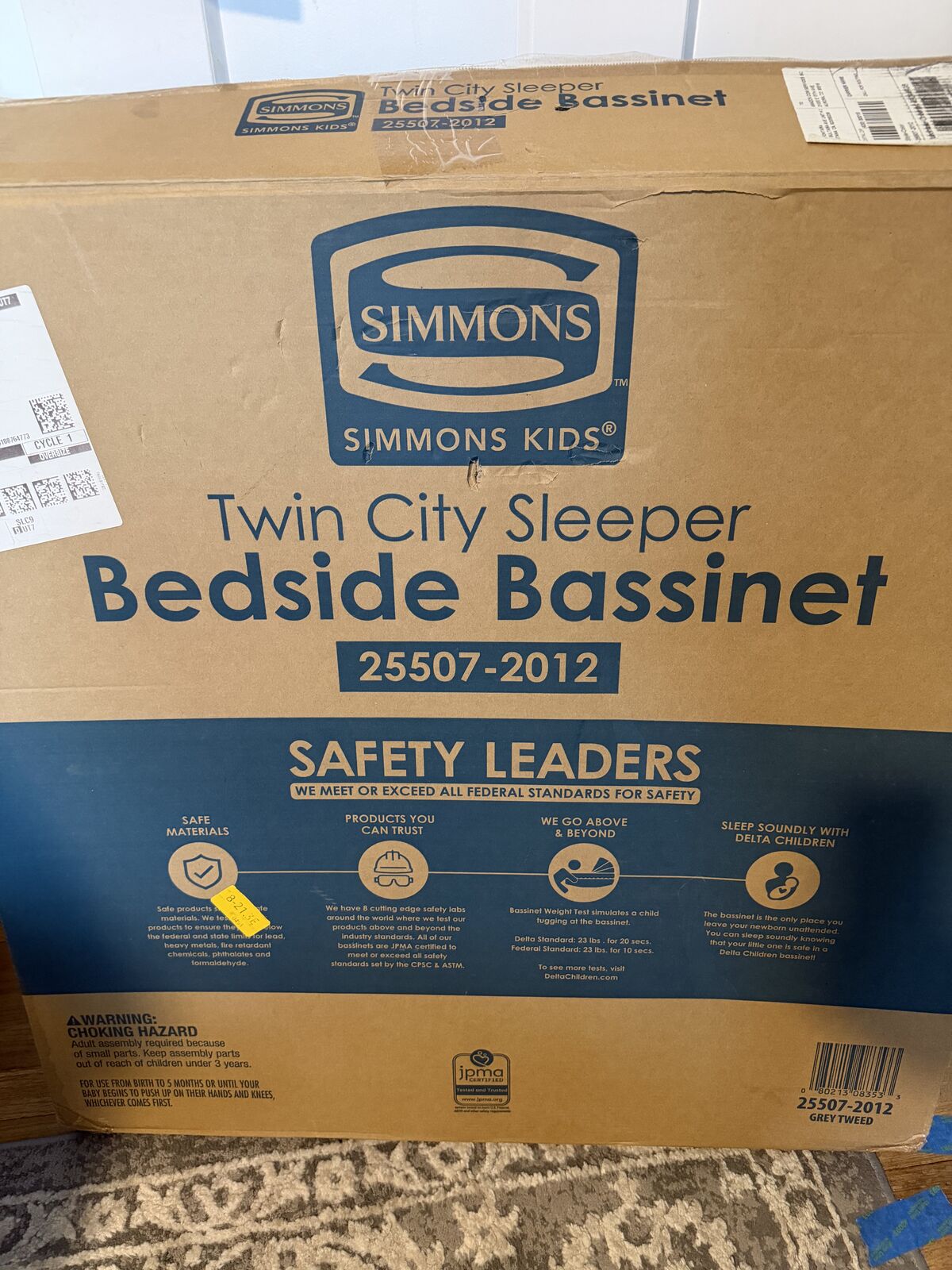 VenmoTwin bassinet - Simmons kids by the bed city sleeper bassinet for twins. Adjustable height! Our twins were very comfortable in this until they outgrew it. Very gently used. It has little waterproof mattresses in each side with a little sheet for each. ALL PARTS INCLUDED! All screws and tools accounted for. And still has the box for easy pickup.