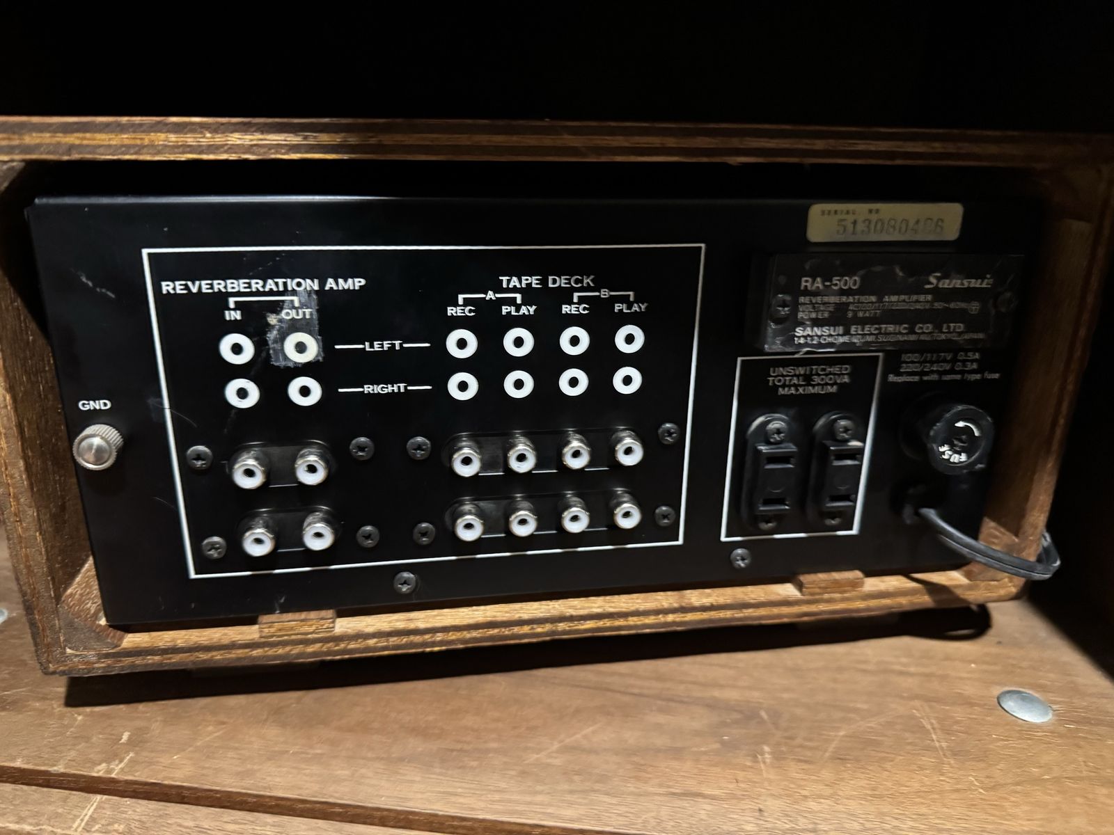 This is the 6th unit I have restored and will probably be the last I work on. Refinished wood veneer with Rubio Monocoat 2C in Cinnamon Brown. Completely recapped Sansui RA 500 Reverb amplifier. Recapped using Nichicon MUSE capacitors - this unit is great for another 20 years and beyond.Brand new LED lights. See my other ad for the Sansui RA 700.