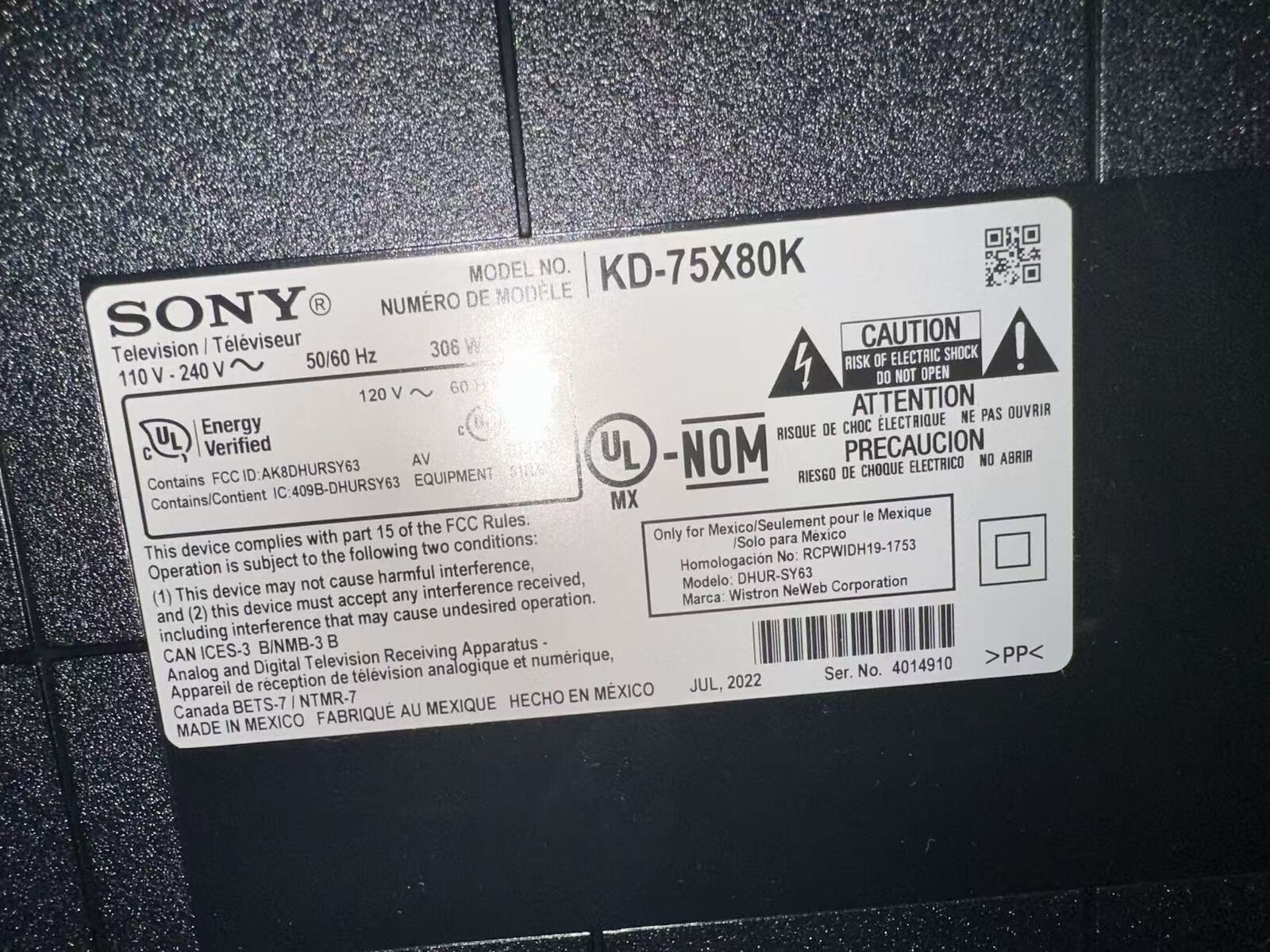 ZelleSony BRAVIA 75" 4K Smart TV (Model KD-75X80K) in excellent condition.