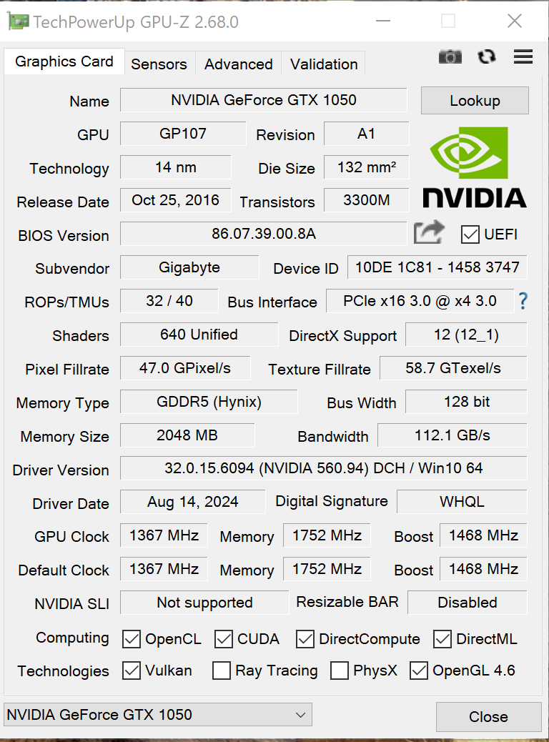 I pulled this from my own SFF PC during a downsizing/upgrade — it’s been reliable, but I don’t need a dedicated GPU for that build anymore. I have 2 and ready to sell both of them. Solid low-profile GPU for small form factor (SFF) builds and OEM desktops that need a graphics upgrade without needing extra power cables. Great for light gaming/esports titles, HTPC use, or adding more display outputs. Specs: Model: GIGABYTE GeForce GTX 1050 OC Low Profile 2GB Memory: 2GB GDDR5 (128-bit) Form factor: Low Profile (fits SFF cases) Power: PCIe slot powered (no 6-pin required) Outputs: DVI-D + HDMI + DisplayPort (see photos) Notes: Clean, tested (on Furmarm), and working perfectly Includes low-profile bracket (no full-height bracket) Local pickup welcome — happy to show it working at meetup Payment: CASH ONLY