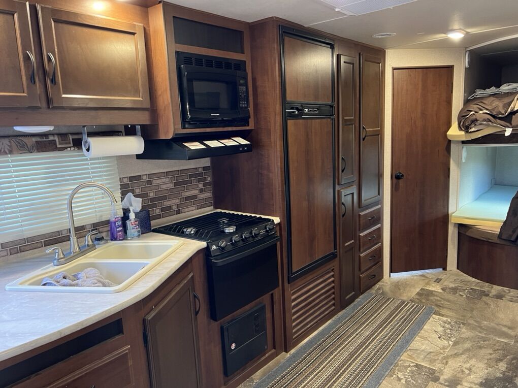 Selling my 2015 Jayco Jayflight 28 foot travel trailer. It is model 28BH. I purchased it new in 2015 from camping world. Everything works great. sleeps 10+ people with huge bunkbeds in the rear and full-size queen mattress in the front. Has a large slide with kitchen table and couch. We use it a few times each summer and it has been stored in covered storage with routine maintenance. We’ve never had a major issue with the trailer.