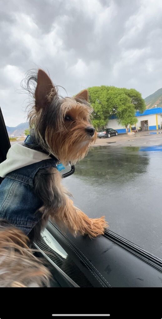 Franky is around 6 lbs with traditional Yorkie markings and a glossy coat. He’s playful, confident, and full of personality. He is very outgoing and friendly and wants to be everyone’s friend. Obsessed with his toys and loves walks.