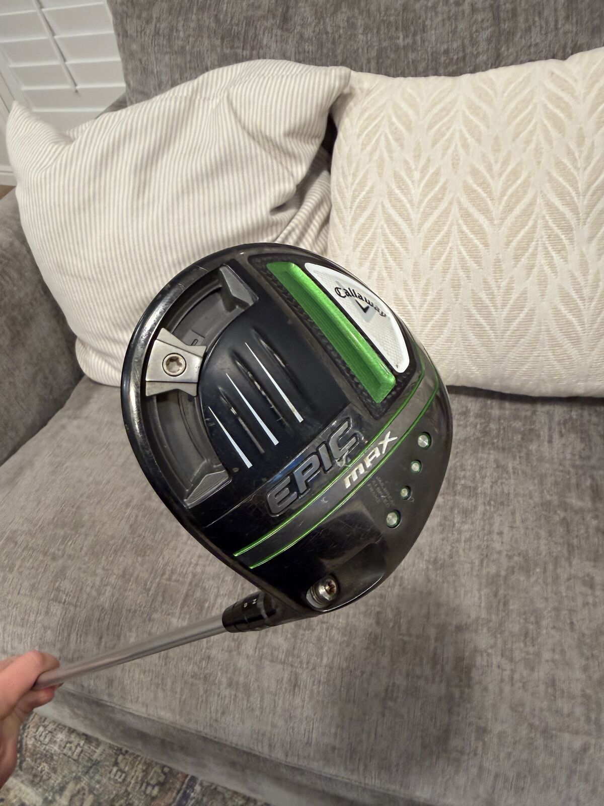 ApplePaySelling a Callaway Epic Max driver head and two shafts. Everything is in good used condition. Normal wear on the face but no dents or cracks.
