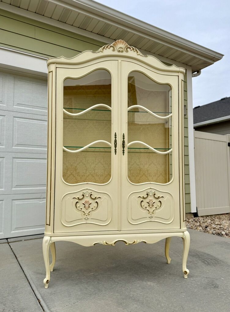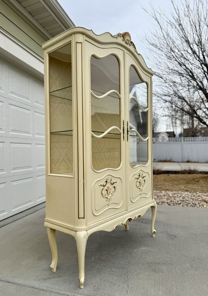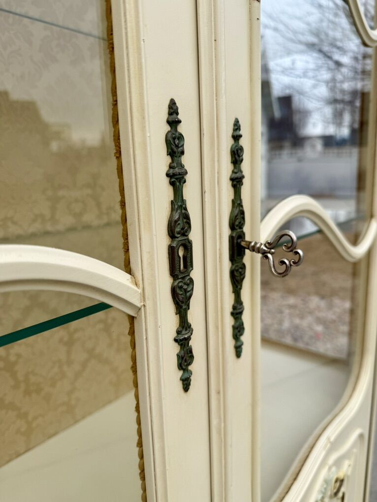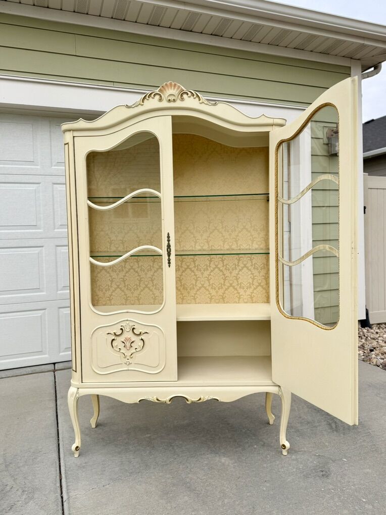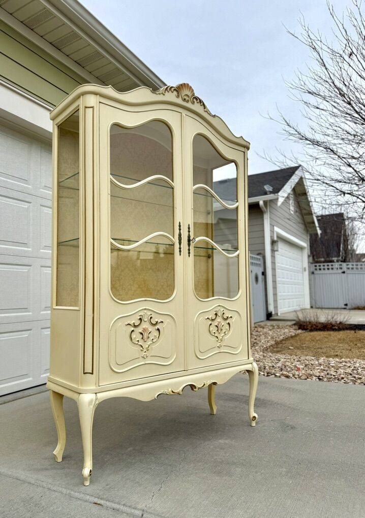 VenmoBeautiful antique display cabinet. Original owner bought it in Germany and had it shipped to the US. Original color and adornments. Glass shelves inside and original key. 72” tall, 42” wide, 15” deep Possible delivery. Cash or Venmo No holds