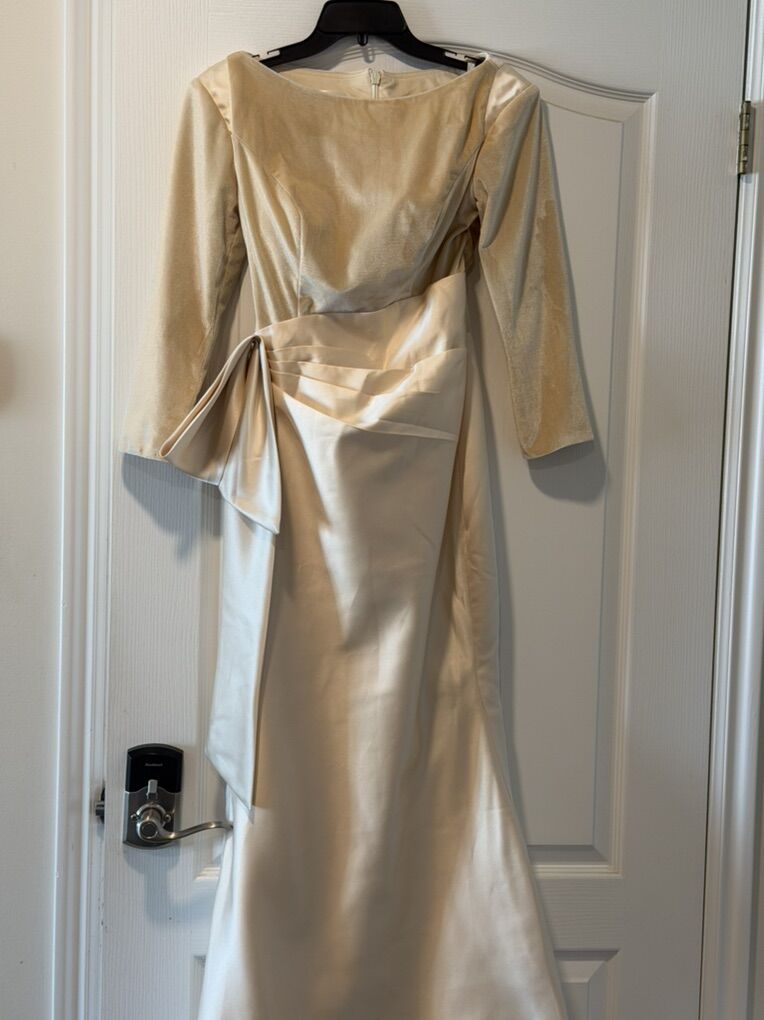 VenmoUnworn formal floor length champagne (creamy gold) dress from cocomelody.com It came too late to wear to my daughter’s wedding. Velvet top and thick satin skirt. Very nice fabric. Size 4 Paid $130 asking $60 Thank you!