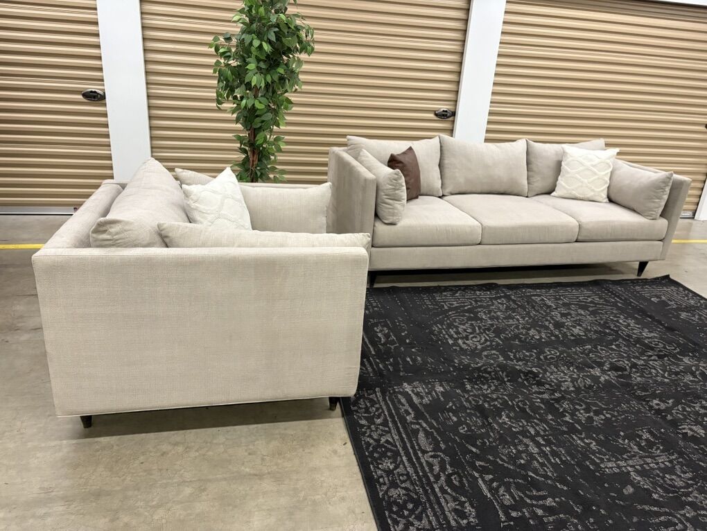 BEAUTIFUL COUCH SET IN AMAZING CONDITION‼️ No rips, damages or stains. All cushion covers (seat & back) were removed and machine washed! Super comfortable with deep seating. Sofa is large enough for 4 people!