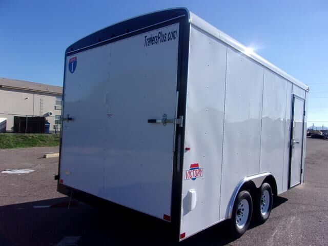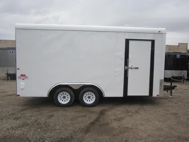 Trailer Type: VICT10216TA2 Size: 102 X 16 GVWR: 7000 lbs Axles: (2) Coupler: 2 5/16" Suspension: Spring Axle Tires: Radial Lights: LED Exterior Color: WHITE