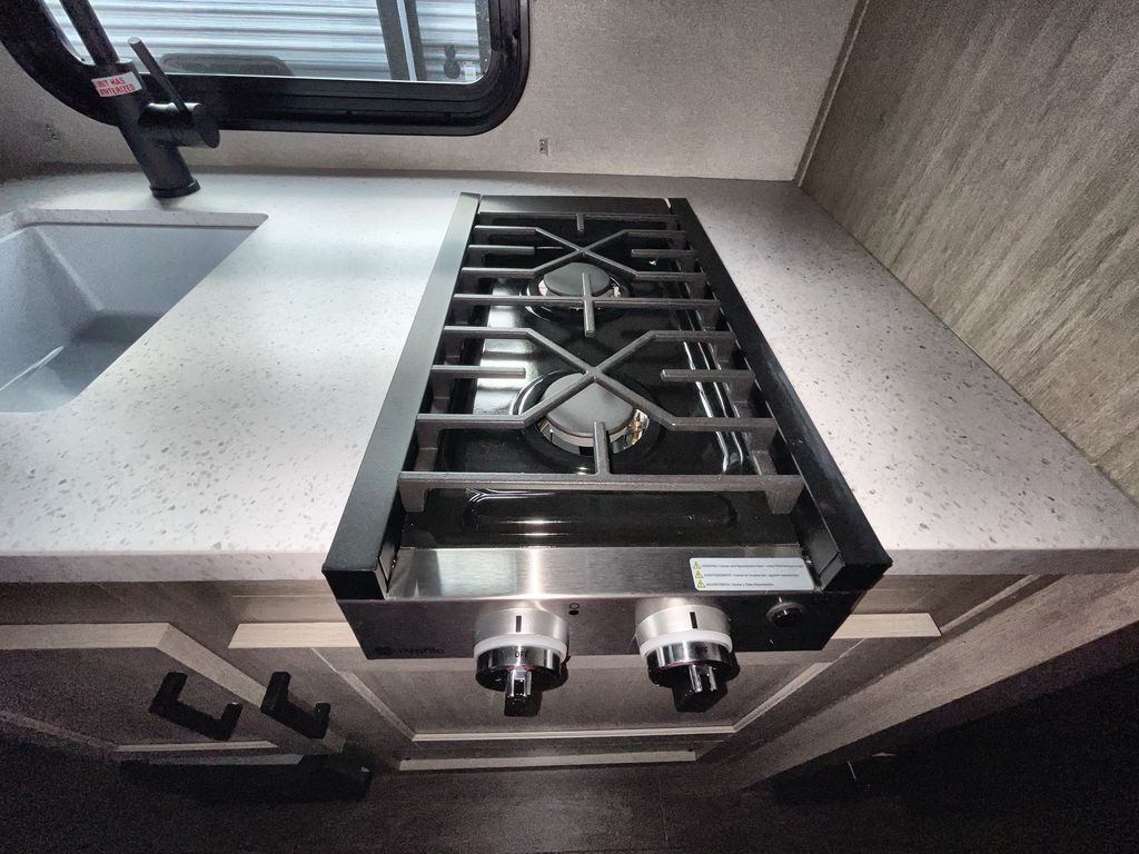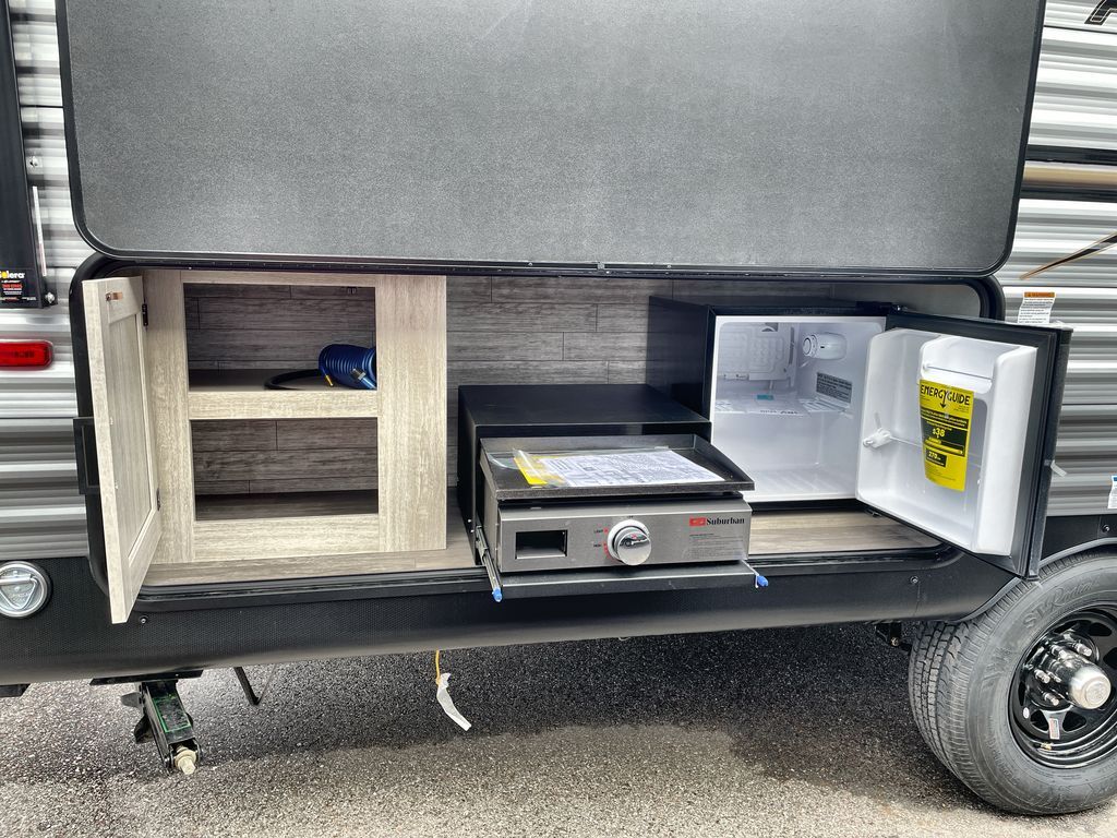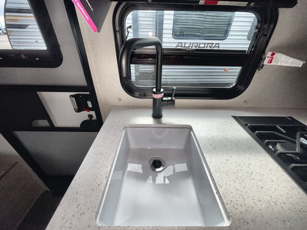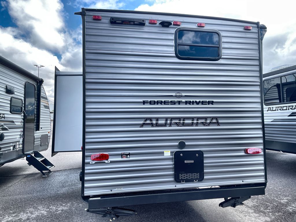 Comfortability, usability, and quality is what you will find in each one of these Forest River Aurora Light travel trailers! They are designed with a superior build and packed full with industry leading, functional, and distinctive standard features. The diamond plate rock guard will protect your unit from road debris and the nitrogen filled radial tires, which keep their pressure longer, offer better fuel economy. You will also find upgraded JBL Elite exterior speaker outside, an electric awning with multicolor lights and remote, plus flush mount baggage doors for easy packing. The interiors are beautifully designed with matte black kitchen and bath faucets, black nightshades in the living room, and GE kitchen appliances!