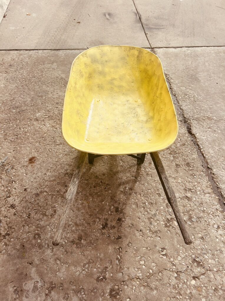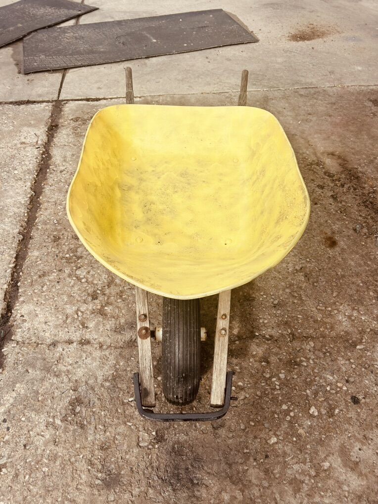 VenmoSmall but very sturdy wheelbarrow. 4 cubic ft Tire is good. Handles are good. Pan is painted to help with rust. $65